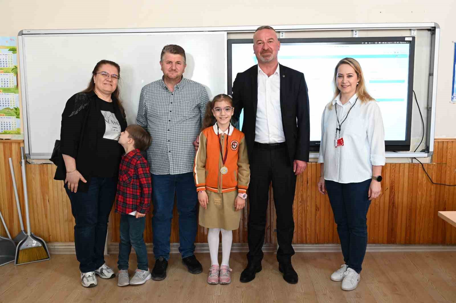 Karacabey Belediye Başkanı Fatih Karabatı önceki gün, sınıf başkanı seçilirse belediye başkanını sınıfta arkadaşlarıyla buluşturacağının sözünü veren Cumhuriyet İlkokulu 3-A sınıfı öğrencisi Zehranur Akın ve arkadaşlarını ziyaret etti.
