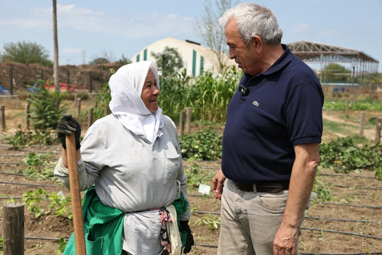 Başkan Şadi Özdemir, parklardaki incelemelerinin ardından Ürünlü’deki Kent Bostanları’nı da gezdi. Burada çalışanlarla da sohbet eden Başkan Özdemir, çalışmalar hakkında da bilgi aldı.