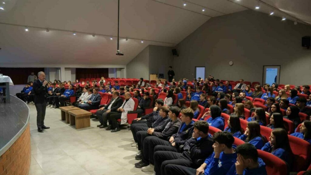 Başkan Taban öğrencilerle okulun çok amaçlı salonunda buluştu. Programda öğrencilerle birlikte okul idarecileri ve öğretmenler de yer aldı. Öğrencilerle yapılan buluşmada kısa bir selamlama konuşması yapan Okul Müdürü Mesut Mutlu, ziyareti ve öğrencilere verdiği değer için Başkan Alper Taban’a teşekkür etti. Başkan Alper Taban ise geçtiğimiz yıl Genç Bakış Buluşmalarını başlattıklarını hatırlatarak “Bu yıl da yine okullarımızın özellikle son sınıf öğrencileriyle buluşmalarımızı sürdürüyoruz. Bizlere kapılarını açan idarecilerimize teşekkür ediyorum. Bu buluşmaları biz neden yapıyoruz? Öğrencilerimiz, öğretmenlerimiz ve okul idarecilerimizi dinlemek için gerçekleştiriyoruz. Yaptığımız iş gereği bizim karşımızdaki kitleyi anlamamız, kitleyle iletişimimizi iyi kurmamız gerekiyor. Sizlerin beklenti ve isteklerinizi anlayıp, ona göre hizmet üretmek durumundayız. Bunu anlamak için de bu buluşmalar bizim için çok kıymetli. Burada amacımız konuşmak değil, sizleri dinlemek. Amacımız birlikte ve katılımcı yönetim anlayışını ortaya koymak. Burada her türlü soruyu bana yöneltebilirsiniz” dedi.