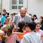 Başkan, öğrenciler tarafından yoğun ilgi görürken, okul çıkışı öğrencilerle beraber İstiklal Marşı’nı da okudu.