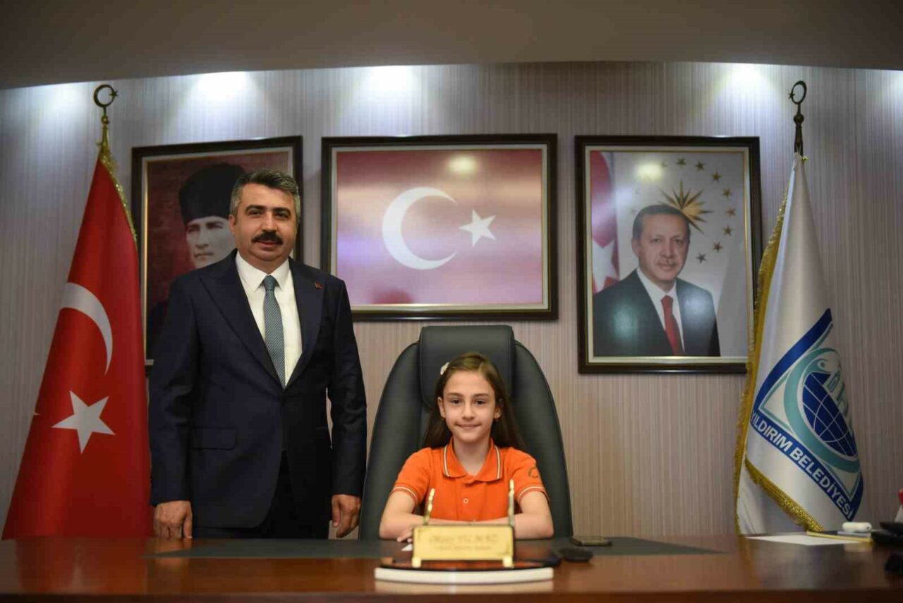 Yıldırımlı çocukları başkanlık makamında misafir ederek geleceğe ilişkin fikirlerini aldıklarını belirten Başkan Oktay Yılmaz, “Çocuklarımız ve geleceğimiz için Neşeli Yıldırım’ı kurmak adına elimizden gelen bütün imkânları seferber ediyoruz. Yıldırım Belediyesi olarak 23 Nisan Ulusal Egemenlik ve Çocuk Bayramı’nda evlatlarımız için dopdolu bir program hazırladık. Bayrak Alanı’nda düzenleyeceğimiz etkinliklere tüm çocukları bekliyorum” dedi.