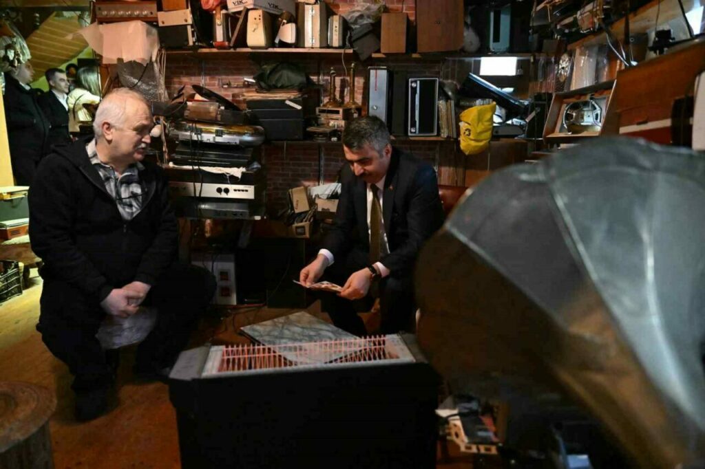 Yıldırım Belediye Başkanı Oktay Yılmaz, Bursa’da Yeşil Caddesi’ndeki atölyesinde 40 yıldır eski radyo ve gramofonları tamir edip çalışır hale getiren son usta ’Nostalji Doktoru’ olarak tanınan Ahmet Ali Şağın’ın (63) misafiri oldu. Şağın ile sohbet eden Başkan Oktay Yılmaz, atölyede bulunan radyo, gramofon ve müzik dolaplarını inceledi.