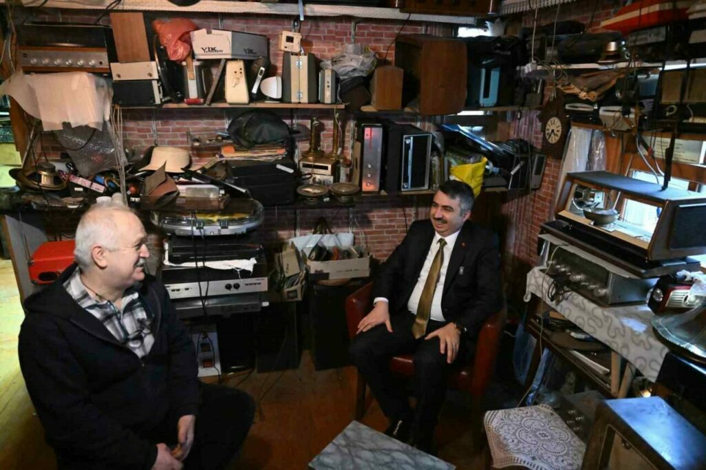 Yıldırım Belediye Başkanı Oktay Yılmaz, 40 yıldır eski radyo, televizyon ve gramofonlara yeniden hayat vererek tozlu raflardan inmelerini sağlayan koleksiyoner Ahmet Ali Şağın’ı ziyaret etti.