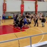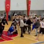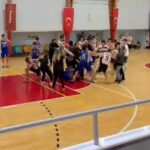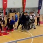 Bursa’da İnegöl Atlasspor-Winner Spor U-16 Erkekler Basketbol maçında yükselen tansiyon yerini kavgaya bıraktı. Bir oyuncunun yaralandığı kavgada saha boks ringe dönerken, o anlar kameralara anbean yansıdı.