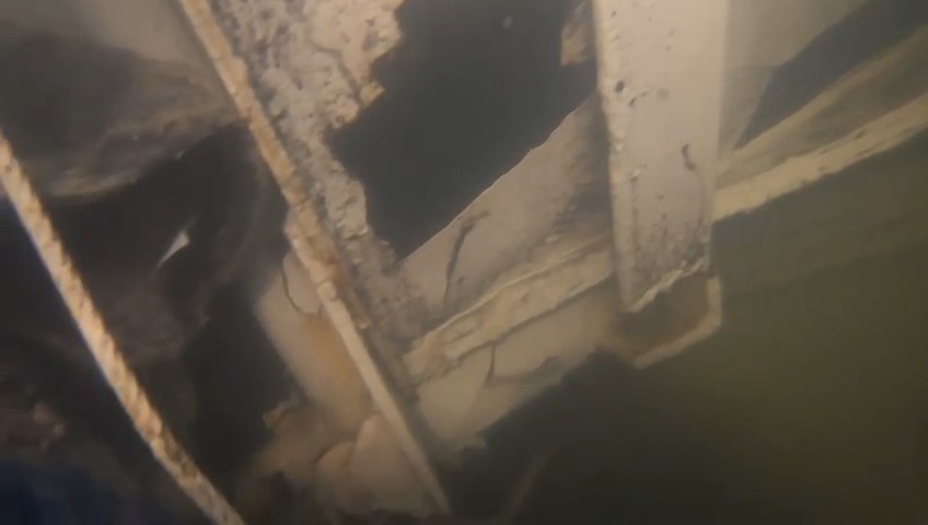 Marmara Denizi’nde batan kuru yük gemisinde iki kişinin cansız bedenine ulaşılırken, geminin makine dairesine girilen merdiven boşluğu dalgıçlar tarafından denizin altında görüntülendi.