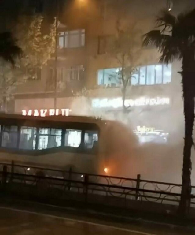 Bursa’da belediye otobüsünün motor kısmındaki arıza panik dolu anlar yaşattı. Dumanların kapladığı araca itfaiye ekiplerince müdahale edildi.