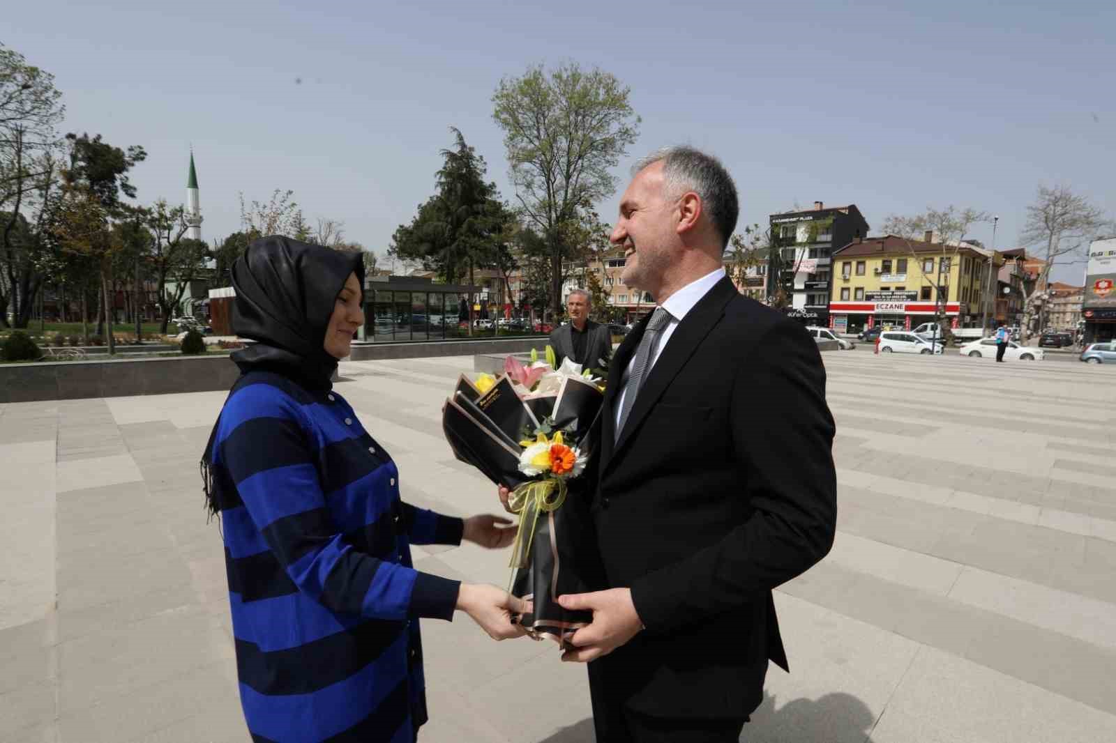 Belediye personeli Başkan Taban’ı çiçeklerle karşıladı