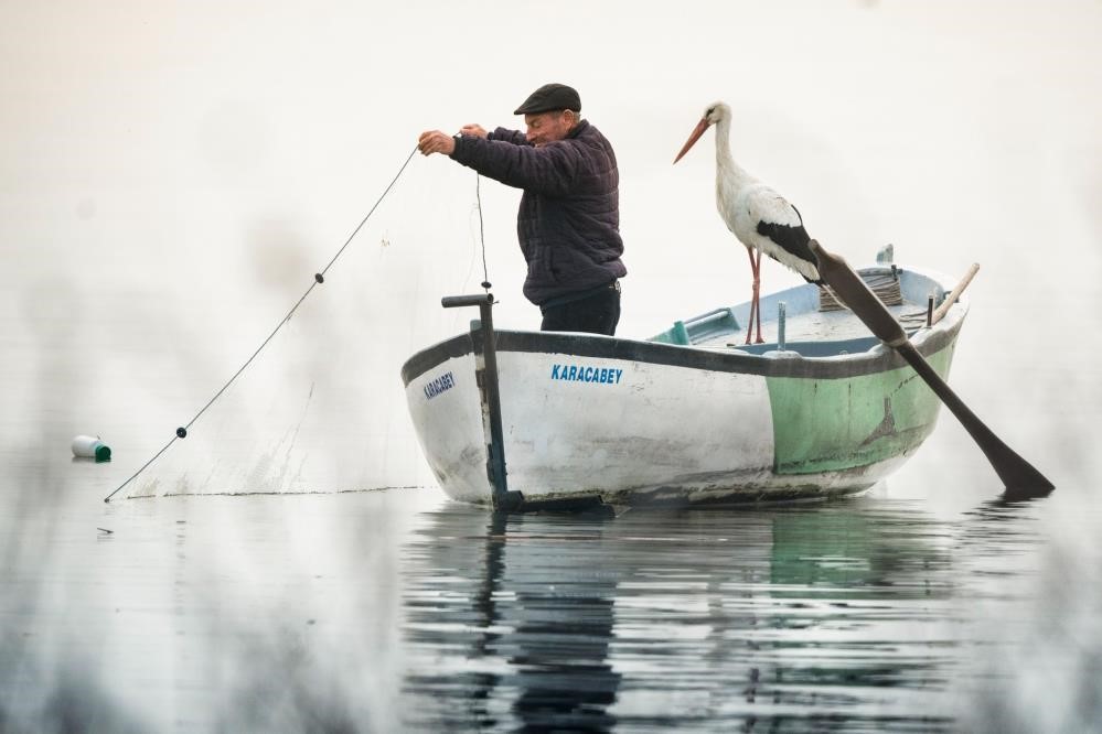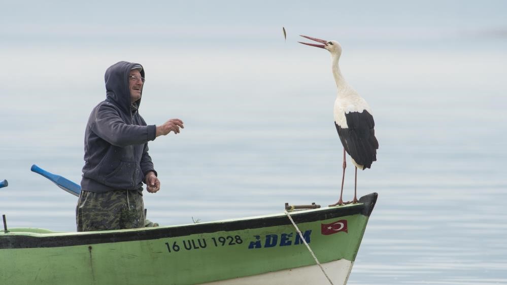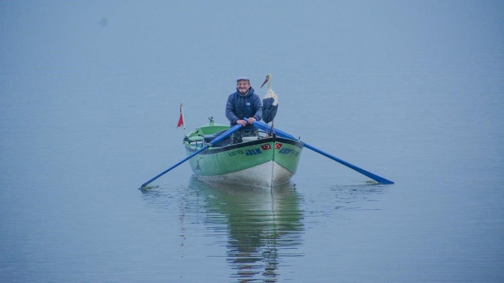 Lüylek Köyü’nde 13 yıldır balıkçı Adem Yılmaz’ın kayığına konan Yaren Leylek bu dostluğu ile gönüllere taht kurmuştu.
