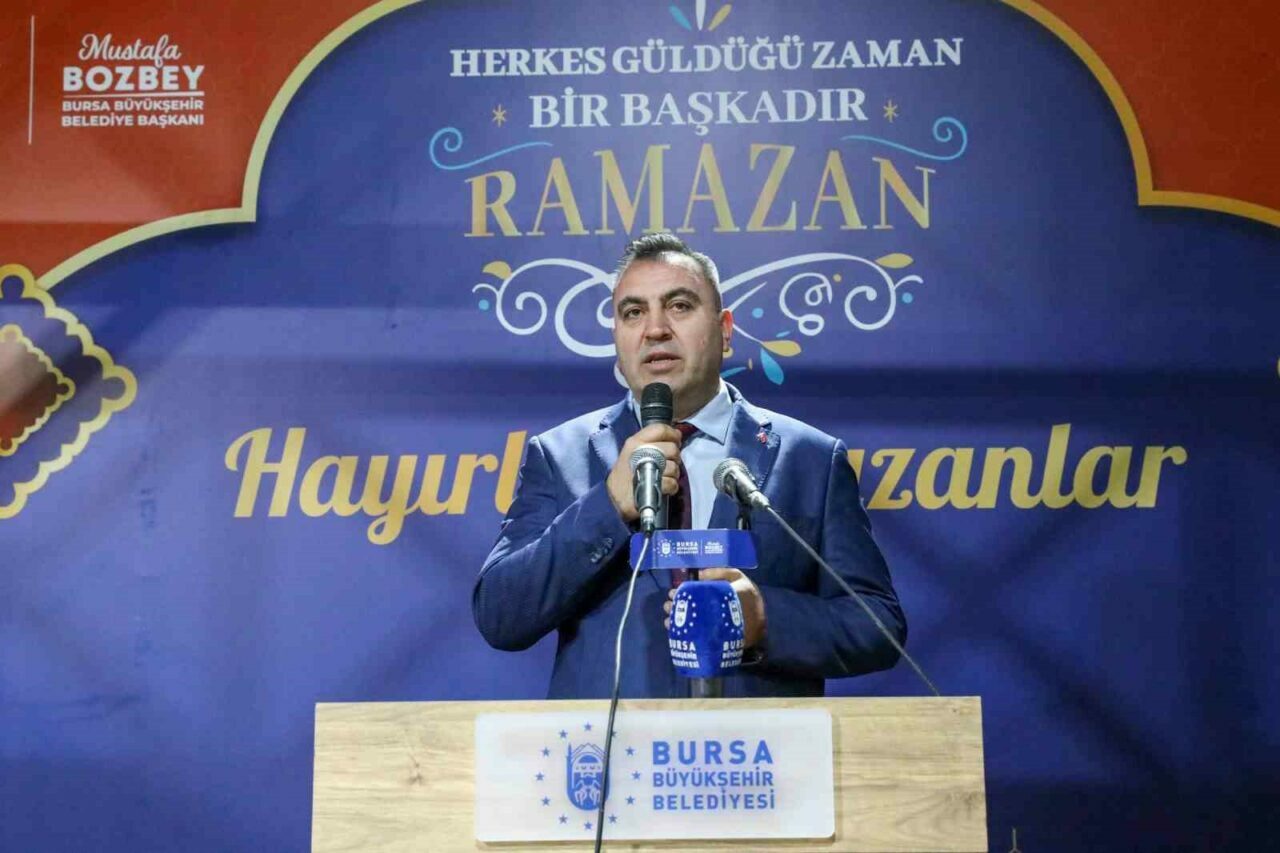 Konuşmasına, Bursa Büyükşehir Belediye Başkanı Mustafa Bozbey’in selamlarını ileterek başlayan Büyükşehir Belediyesi Başkanvekili Mehmet Aydın Saldız, tüm Bursalıların Ramazan ayını kutladı. Herkesin sağlıklı ve bereketli bir Ramazan ayı geçirmesini dileyen ve Ramazan’ın birlik ve dayanışma duygularını güçlendirmesini temenni eden Saldız, Büyükşehir Belediyesi’nin her zaman halkın yanında olmaya devam edeceğini ifade etti.