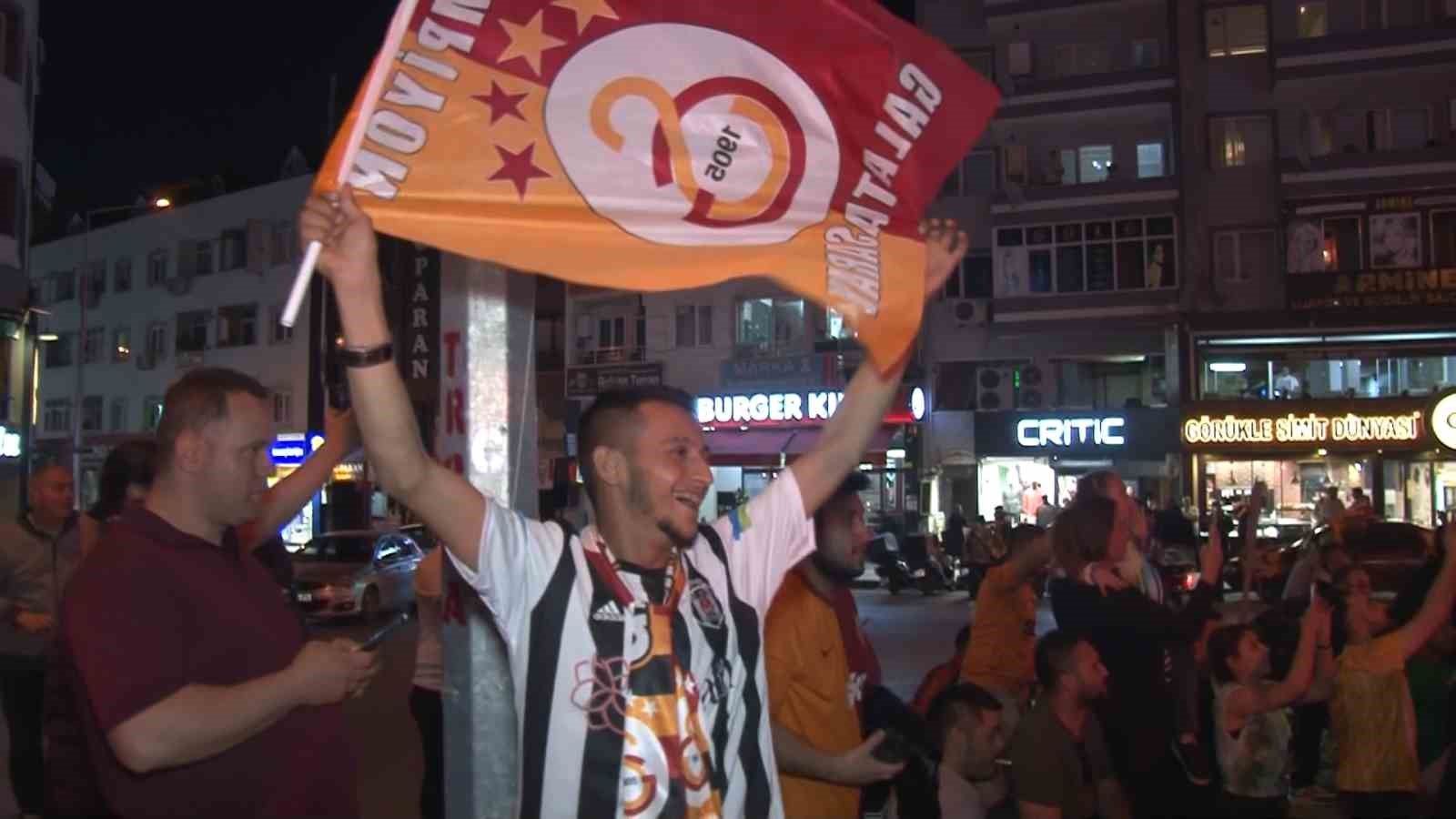 Son düdüğün çalınmasıyla birlikte binlerce Galatasaray taraftarı ellerinde meşale ve bayraklarla sokaklara çıktı. Kutlamalar esnasında bir Beşiktaş formalı taraftar ise eline Galatasaray bayrağı alarak coşkuya ortak oldu.