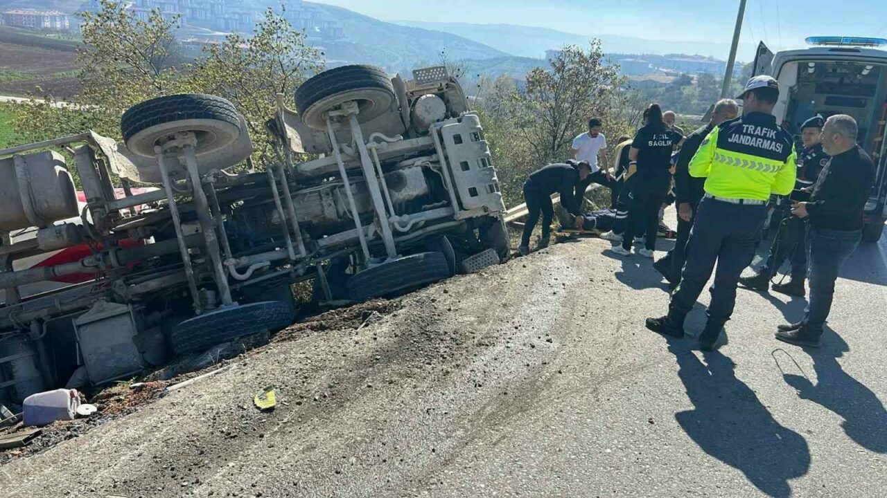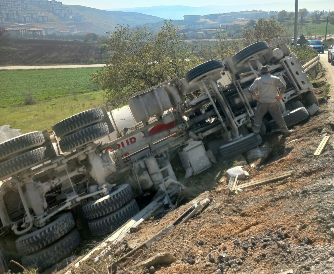 Bursa’nın İnegöl ilçesinde meydana gelen kazada kontrolden çıkan beton mikseri şarampole yuvarlandı.