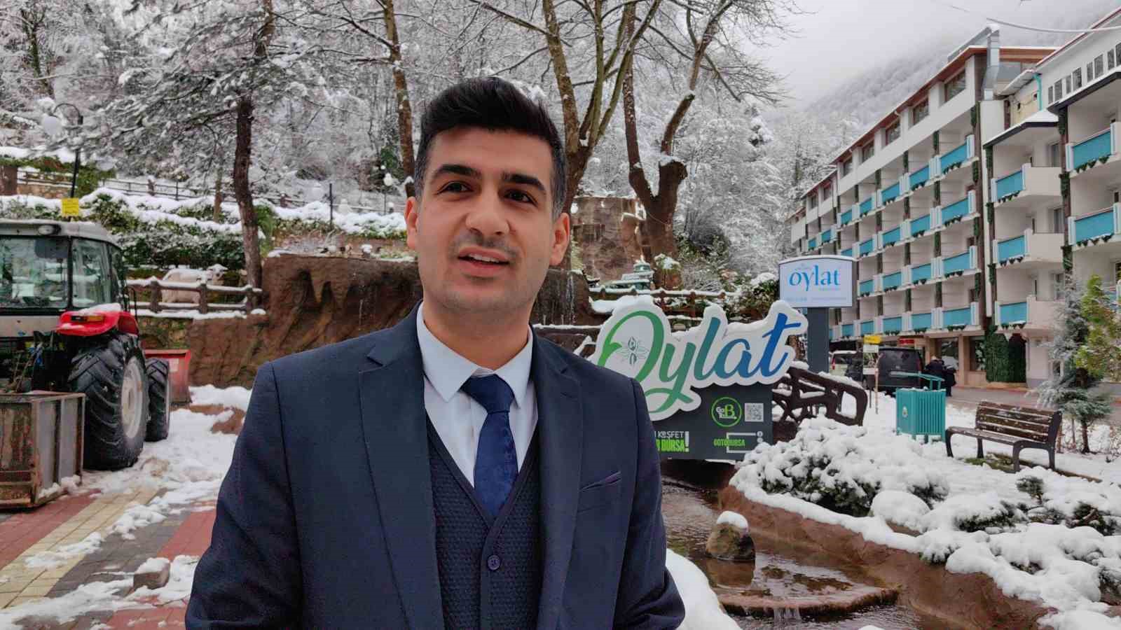 İnegöl Oylat A.Ş. Satış Pazarlama Sorumlusu Furkan Demirtaş, “Oylat’ta şu anda çok güzel bir mevsimdeyiz. İlk kar Oylat’a düştü. Karın yağmasıyla beraber hem havası hem de suyuyla birlikte tam bir şifa kaynağı oldu Oylat. Yıllardır asırlardır hatta herkese şifa kaynağı olmuştur. Termal suyumuzdan bahsedeyim; Oylat Anonim Şirketi olarak şu anda öncelikle şunu söyleyeyim, çok yakın bir tarihte biliyorsunuz ki sömestir tatili var. Zaten çok dolu, çok yoğun geçen bir bölge. Sömestir tatilinde özellikle konaklayacak olan kişilerin şimdiden araması çok iyi olur. Çünkü otellerimizde doluluk oranı yüzde 80’i geçti. Oylat Kaplıcaları’nda bu bölgede çıkan suyun kıymetini İnegöllüler, Bursalılar hatta tüm Türkiye çok iyi biliyor. Su 40-44 derece arasında çıkıyor. Biz suya herhangi bir şekilde ısıtma, soğutma ya da bekletme, herhangi bir işlem uygulamıyoruz. Kaynaktan çıktığı gibi misafirlerimizle buluşturuyoruz. Odalara, genel hamam, havuz, saunalara, bütün kaplıca kullanım yerlerine ulaştırıyoruz. Dolayısıyla bu cilt hastalıklarına, eklem romatizmalarına çok iyi geliyor. Zaten yakınlarımızla bir Oylat Mağaramız var. Astım, bronşit, nefes darlığı hastalığına iyi geliyor. Yaz kış aynı derecede içerisi. Türkiye’nin en büyük ikinci mağarası. Hemen biraz aşağımızda köylü pazarımız var. Gastro yönünden de yerel halkın getirip sattığı köylü ürünleri var. Pazar ürünleri var. Misafirlerimiz ondan da faydalanabiliyor. Aynı zamanda buradaki bütün otellerimizde çocuklarımızın rahatça eğlenebileceği çocuk oyun alanları var. Oylat şelalemiz var. Burada keyifle, ailecek vakit geçirebilecekleri birçok alan mevcuttur. Zaten burayı kullanan misafirlerimiz dedelerinden burayı biliyorlar. 20, 30, 40 yıldır Oylat’ı kullanan misafirlerimiz var, çok seviyorlar. Biz de seviyoruz Oylat’ı. Herkesi sömestirde ve sonrasında Oylat’a davet ediyoruz. Çok fazla yurt dışından talep var. Özellikle şu anda son dönemlerde yurt dışından gruplarımız ağırlıklı oluyor. Makedonya, Rusya, Almanya… Daha çok gurbetçi dediğimiz önce buralı olan misafirlerimiz çok fazla tercih ediyorlar. Birbirlerinden duyuyorlar. İnegöl Belediyesiyle birlikte birçok fuara katılıyoruz turizmle alakalı. Zaten burada da en güzel şekilde İnegöl’ü ve Oylat’ı tanıtıyoruz. O yüzden de çok etkili oluyor” dedi.