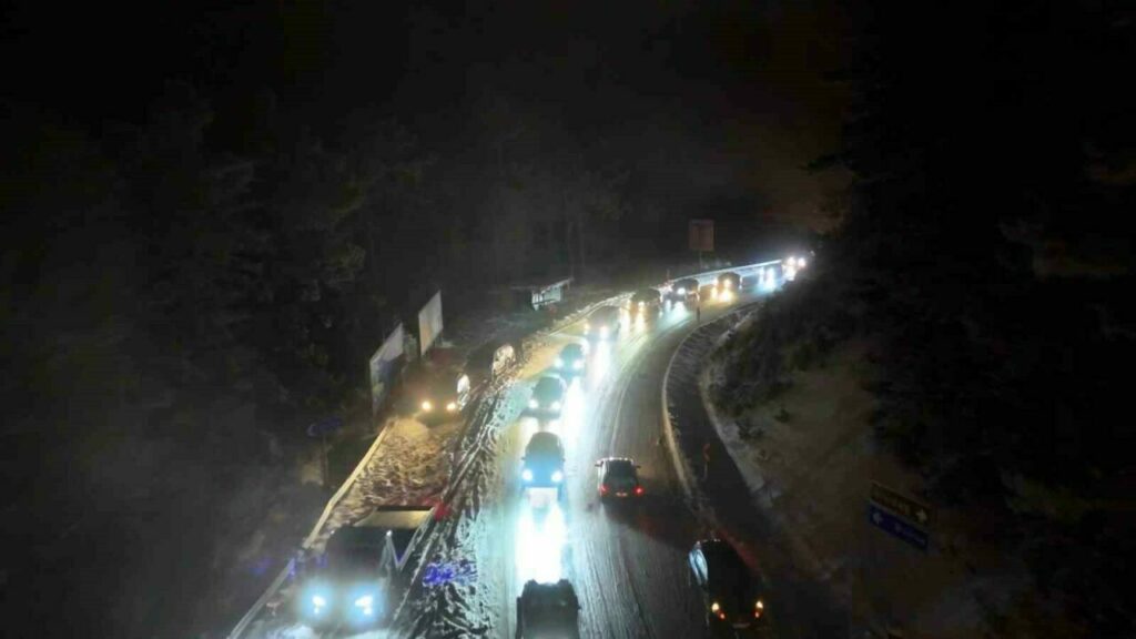 Kar yağışının ardından Uludağ’a adeta akın başladı. Milli Park gişelerinden her 10 saniyede bir araç geçerken, jandarma ekipleri trafik güvenliğini titizlikle sağladı.