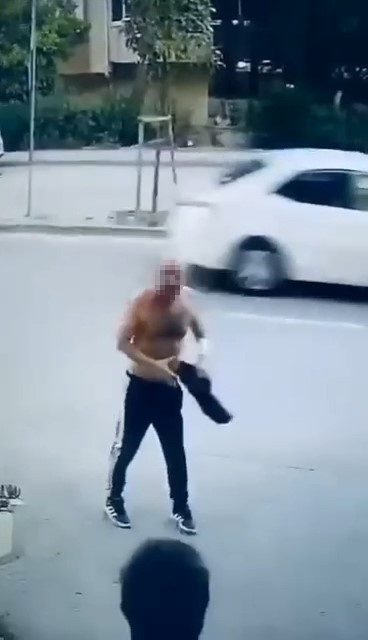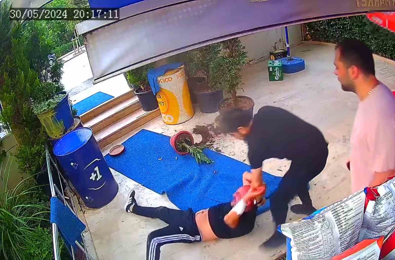 Olay, merkez Nilüfer ilçesi İhsaniye Mahallesi Barbaros Caddesi üzerinde meydana geldi. İddiaya göre, tekel bayi sahibi Muammer Alkan (49),’ın 2 yıldır markete musallat oldu dediği B.B. elinde bıçakla dükkana gelerek marketçi Muammer Alkan’a ve arkadaşı Murat Rıza A.’ya hakaret etti. Duruma sinirlenen Alkan, B.B.’yi sözlü şekilde uyararak dükkandan kovdu. Dışarı çıkan B.B., hakaretlere tehditlere devam edince Muammer Alkan, önce markette temizlik için kullandığı çek pas ile B.B.’nin kafasına vurdu. Kafasının kanamasına daha da sinirlenen B.B. bir kez daha markete girince Alkan bu sefer eline geçirdiği keser ile B.B.’yi dışarıya kovaladı. Hızını alamayınca da önce yere düştü ardından yeniden toparlanıp elindeki keserin sapıyla B.B. ye vurmaya başladı. O anlar marketin güvenlik kameralarına anbean yansıdı. Keser sapının acısına dayanamayan B.B kaçarak marketten uzaklaştı. Daha sonra polisi arayarak ihbarda bulunan market sahibi Muammer Alkan B.B.’den şikayetçi oldu.