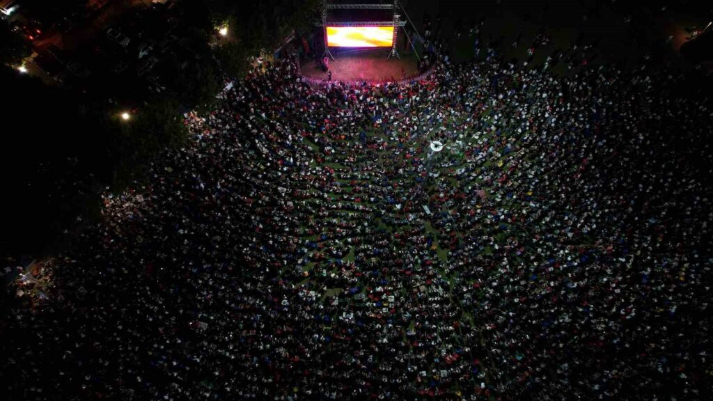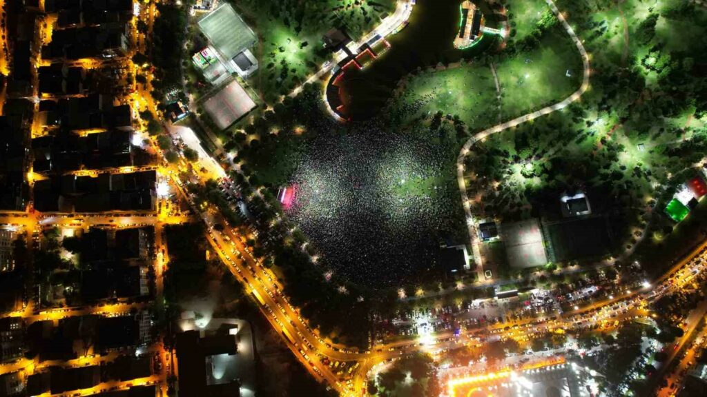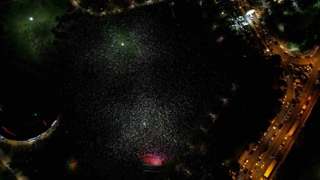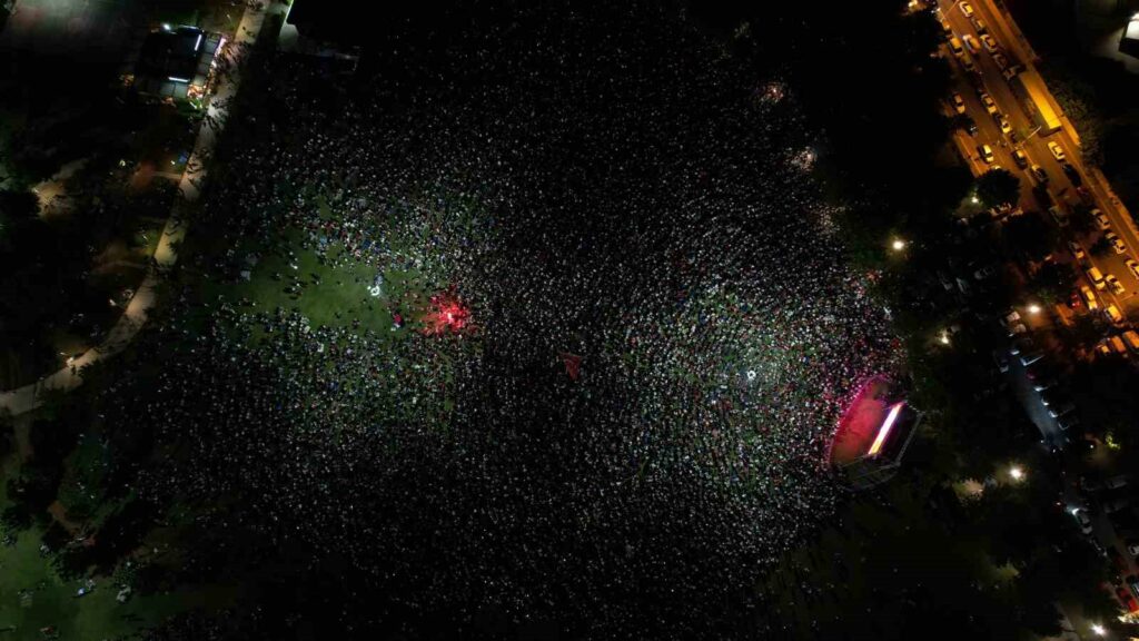 EURO 2024’te çeyrek final maçına çıkan A Milli Futbol takımı, Hollanda ile karşı karşıya geldi. Bursa Büyükşehir Belediyesi Hüdavendigar Kent Parkı’nda kurduğu dev ekran önünde binlerce Bursalı tek yürek oldu. Kimi sandalyesini kimi de ailesini alarak milli maçı izledi. Milli takımın öne geçtiği anda sevinçler, çığlıklar havada uçuştu.