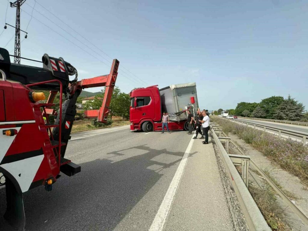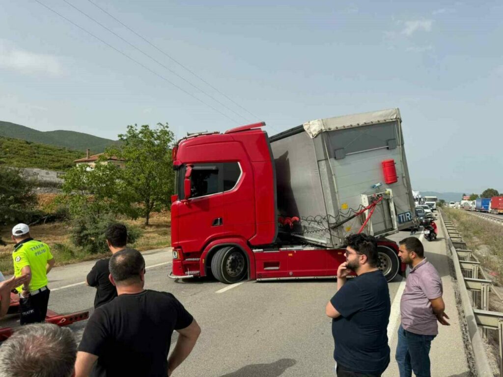 Kaza dün akşam saatlerinde Orhangazi – Gemlik yolu Gedelek trafik ışıklarında meydana geldi. Yalova’dan Bursa yönüne seyir halinde bulunan 48 yaşındaki Bülent Ç. idaresindeki 61 KN 278 plakalı tır yoldan çıkıp makas attı. Ekipler olay yerine geldiğinde sürücünün arı sokması sonucu şoka girip kaza yaptığını belirlediler.