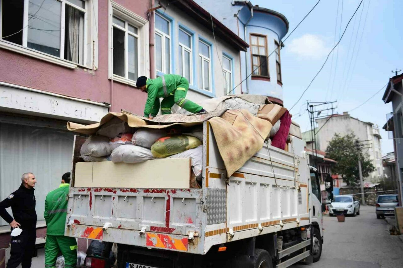 Bursa’nın Osmangazi ilçesindeki tarihi Kayıhan sokağında tonlarca çöpün biriktiği bir ev belediye ekipleri tarafından temizlendi.