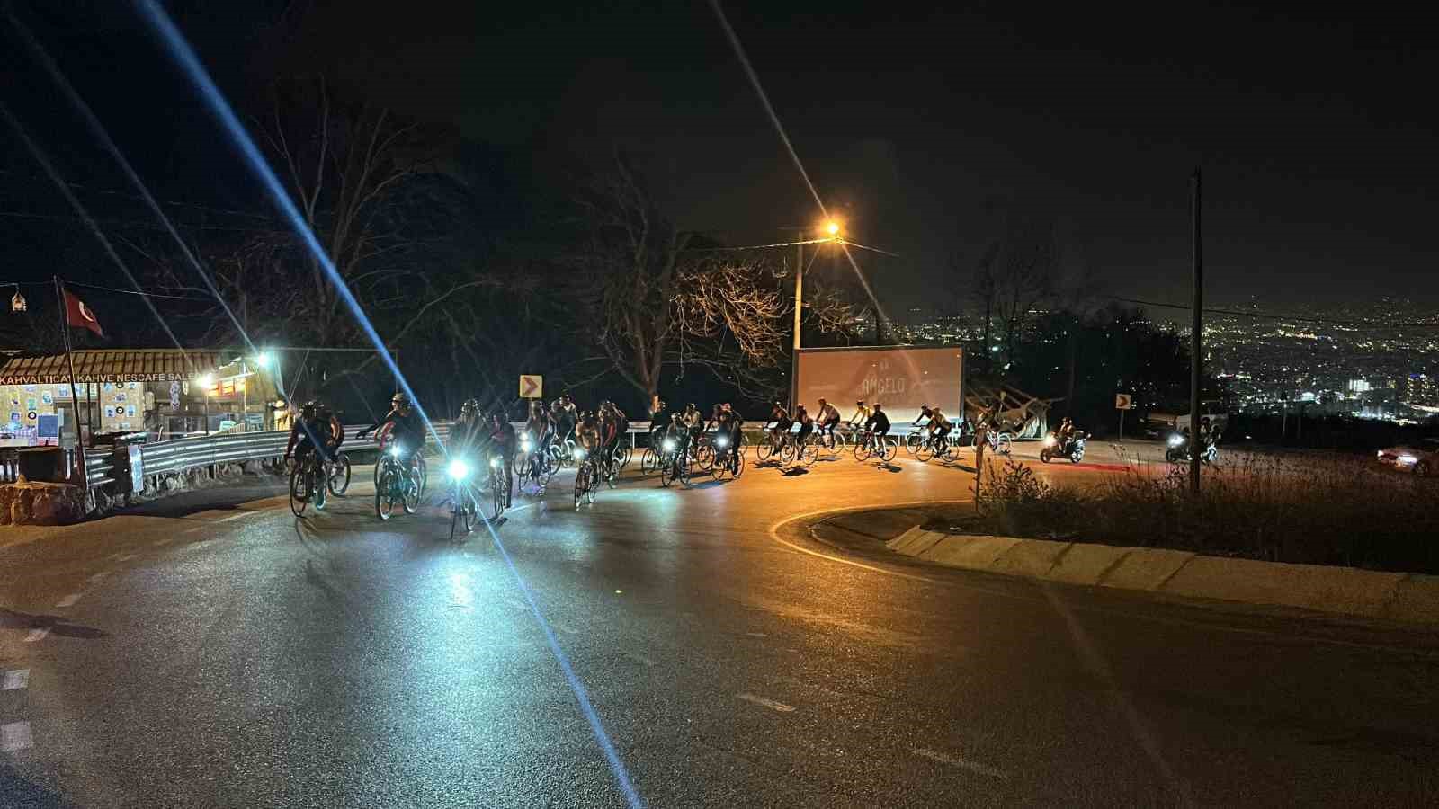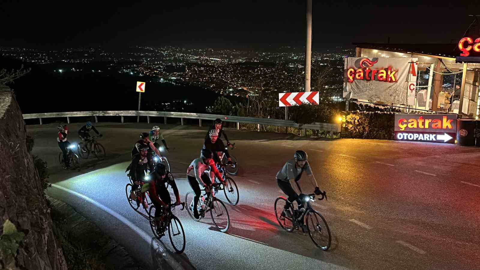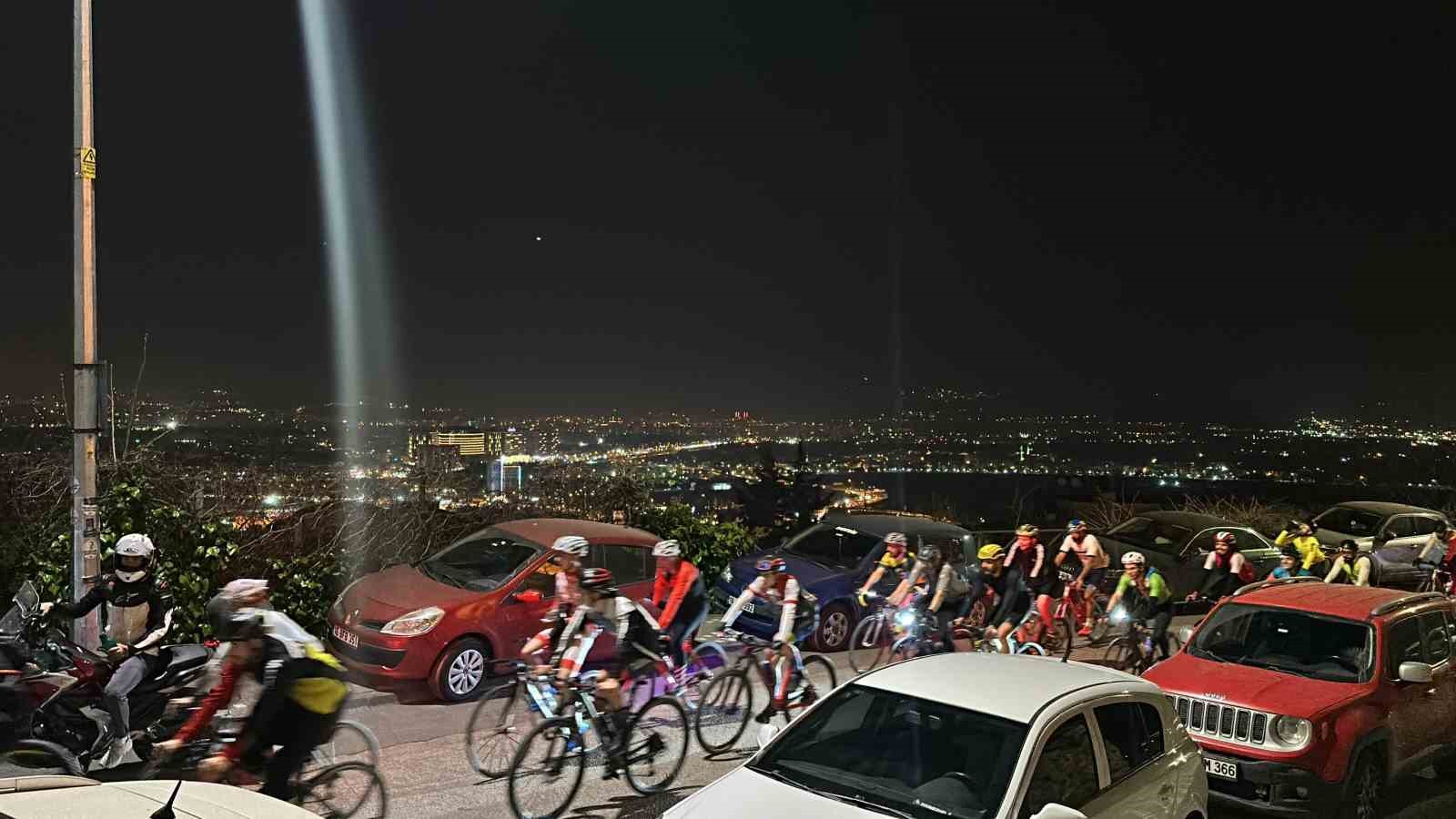 Bursalı bisiklet tutkunları her yıl geleneksel hale getirdiği bisiklet turunun bu yıl 10.sunu düzenledi. Uludağ tırmanış etkinliği için saat 21.30’de Esentepe Mahallesinde toplanan yaklaşık 50 bisikletçi, 3 saat pedal çevirerek Uludağ’a çıktı. Milli Parklar girişine kadar çıkan bisikletçiler hatıra fotoğrafı çektirip, o anları kayıt altına aldı.