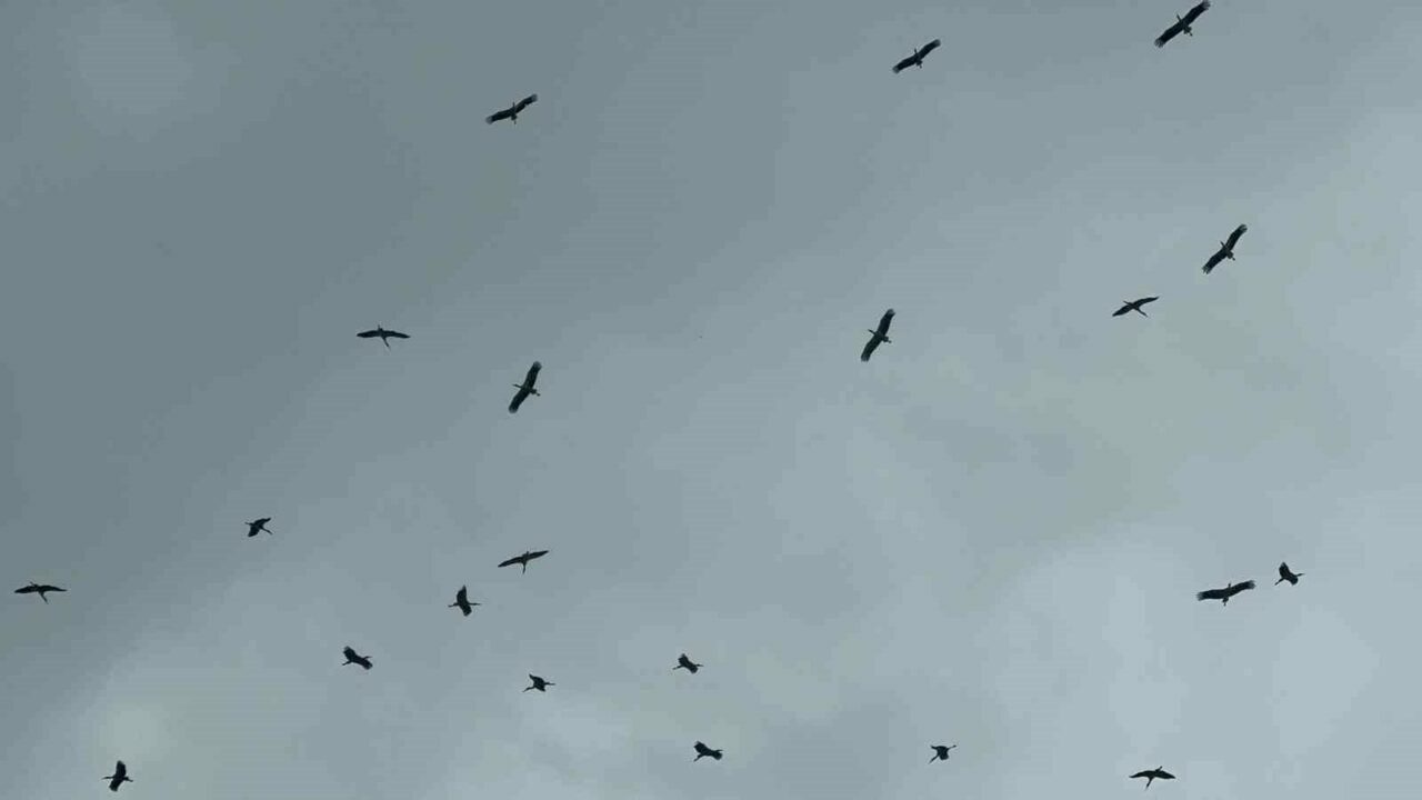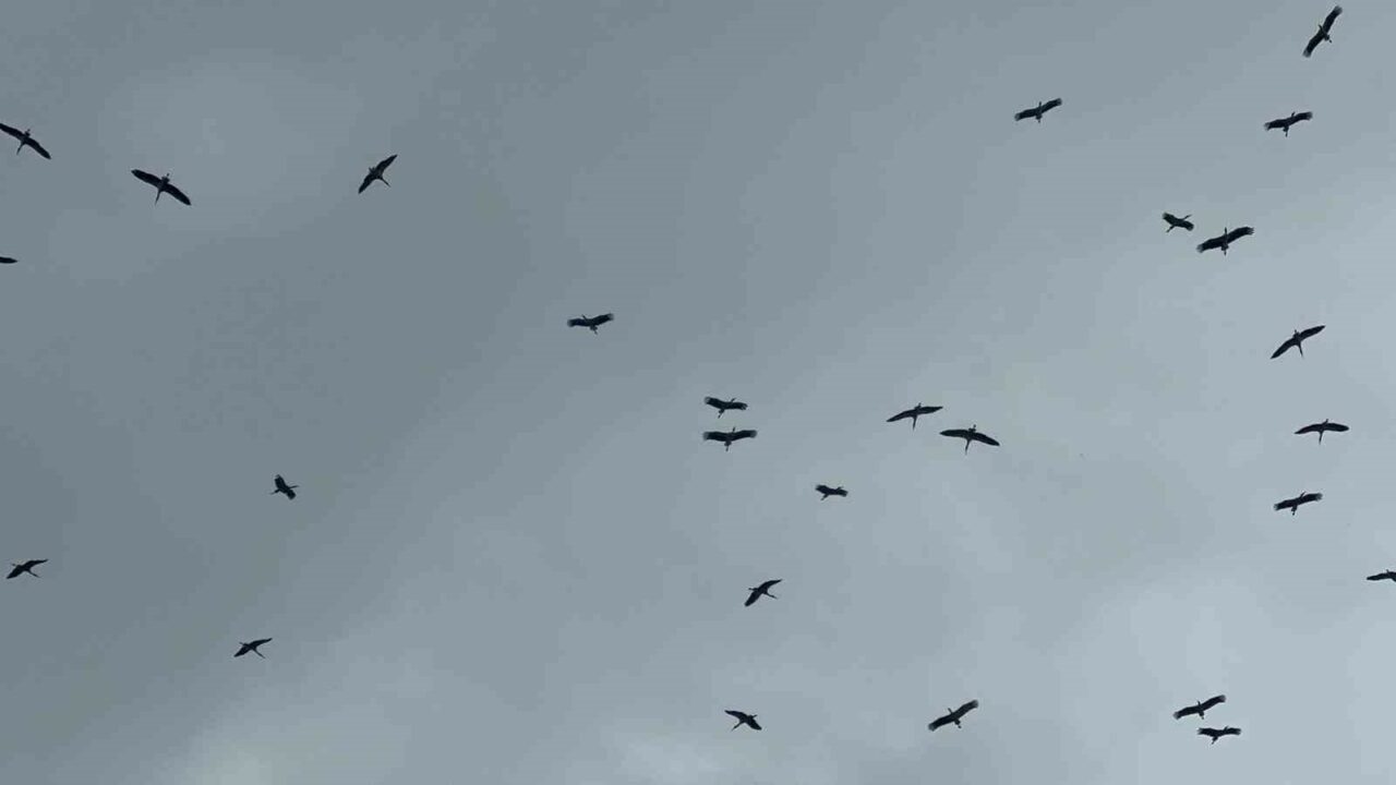 Bursa’ya Kestel ilçesi tarafından Gölbaşı üzerinden giren leylek sürüsü, yağmura rağmen yoluna devam etti.