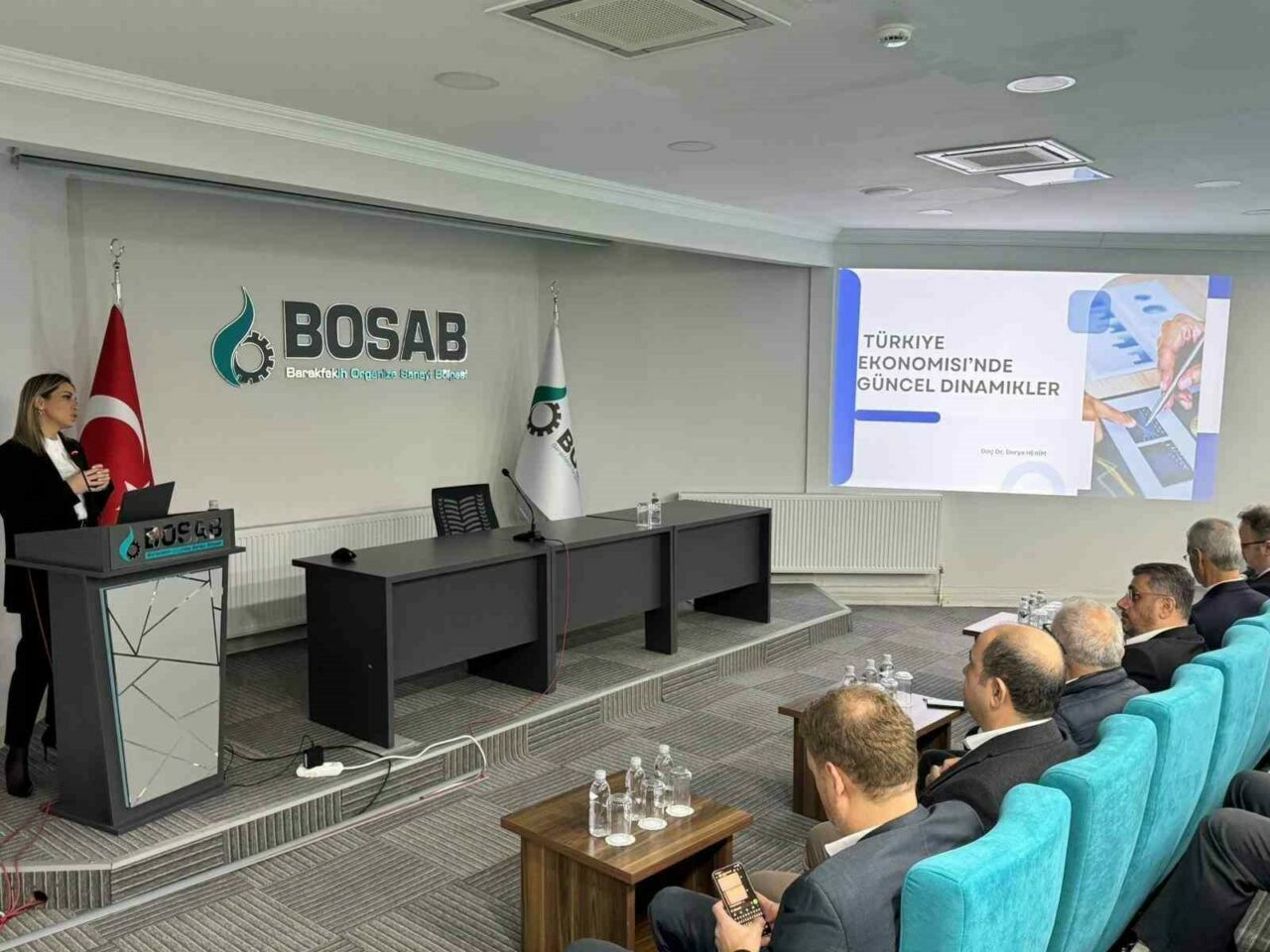 Barakfakih Organize Sanayi Bölgesi (BOSAB), sanayicilerin karar süreçlerine ışık tutmak ve küresel ekonomik trendleri değerlendirmek amacıyla düzenlenen “Türkiye Ekonomisinde Güncel Dinamikler” toplantısına ev sahipliği yaptı. BOSAB Konferans Salonu’nda gerçekleştirilen programda, Uludağ Üniversitesi Öğretim Üyesi Doç Dr. Derya Hekim, makroekonomik görünümden yatırım piyasalarına kadar geniş bir çerçevede güncel verileri paylaştı.