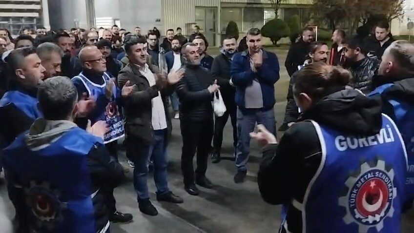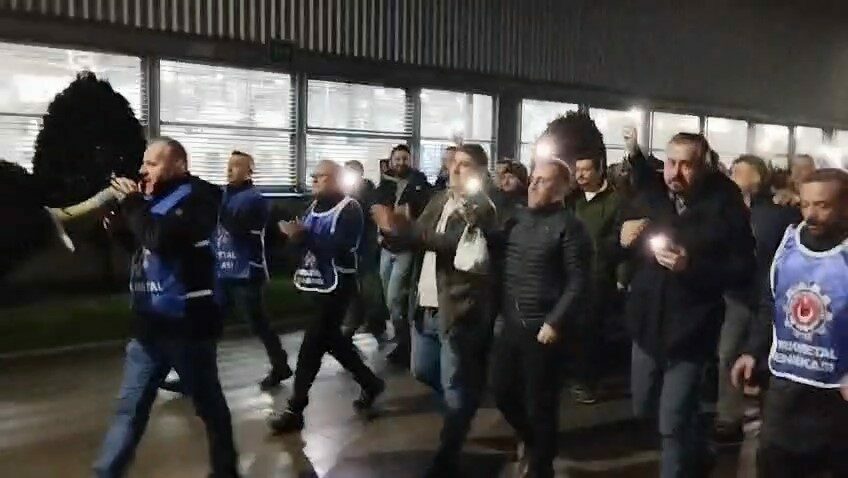 Bursa’daki Bosch Fabrikası’nda çalışan işçiler, 2025-2027 dönemi Grup Toplu İş Sözleşmesi görüşmelerinde anlaşma sağlanamaması üzerine fabrika önünde eylem gerçekleştirdi. Sabah erken saatlerinde karanlıkta fabrika önünde toplanan işçiler ellerindeki cep telefonlarının ışıklarını yakıp sloganlarla protesto gerçekleştirdi.