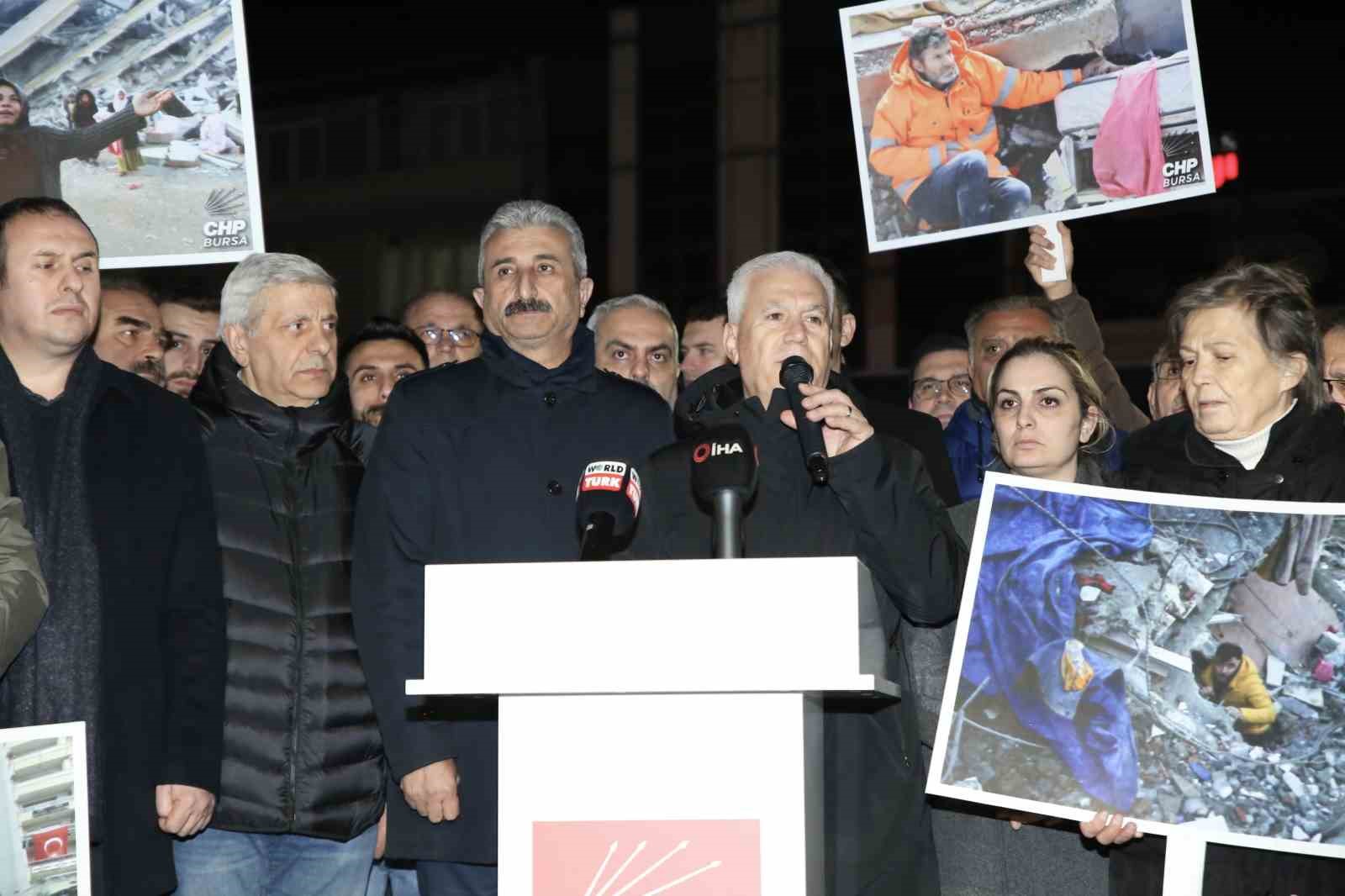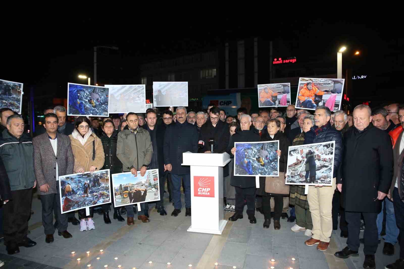 CHP Bursa İl Başkanı Nihat Yeşiltaş yaptığı konuşmada, “Ne yazık ki güzel ülkemiz bundan 1 yıl önce Kahramanmaraş’ın Pazarcık ilçesinde 7.7, ardından yine Elbistan ilçesinde 7.6 büyüklüğünde büyük bir depremle sarsıldı. 5 Şubat 2023 akşamı yüreğinde nice umutlarla yastığa başına koyan binlerce vatandaşımız hayatını kaybetti. Sayısız vatandaşımız eşini, çocuğunu, annesi, babası, en sevdiklerini kaybetti. Bu depremler 11 ilimizde çok büyük yıkımlara neden oldu” dedi.