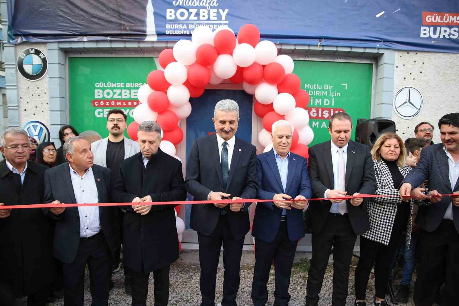 CHP Bursa Milletvekillerinden Orhan Sarıbal ve Hasan Öztürk, CHP İl Başkanı Nihat Yeşiltaş, CHP İlçe Başkanı İlhami Gün ve Yıldırım Belediye Başkan Adayı Mehmet Önder Mutlu’nun da yer aldığı açılışta halka seslenen Bozbey, kentsel dönüşüm konusuna değinerek “Belediyenin işi sadece bugünü değil, geleceği düşünerek hareket etmektir” dedi.