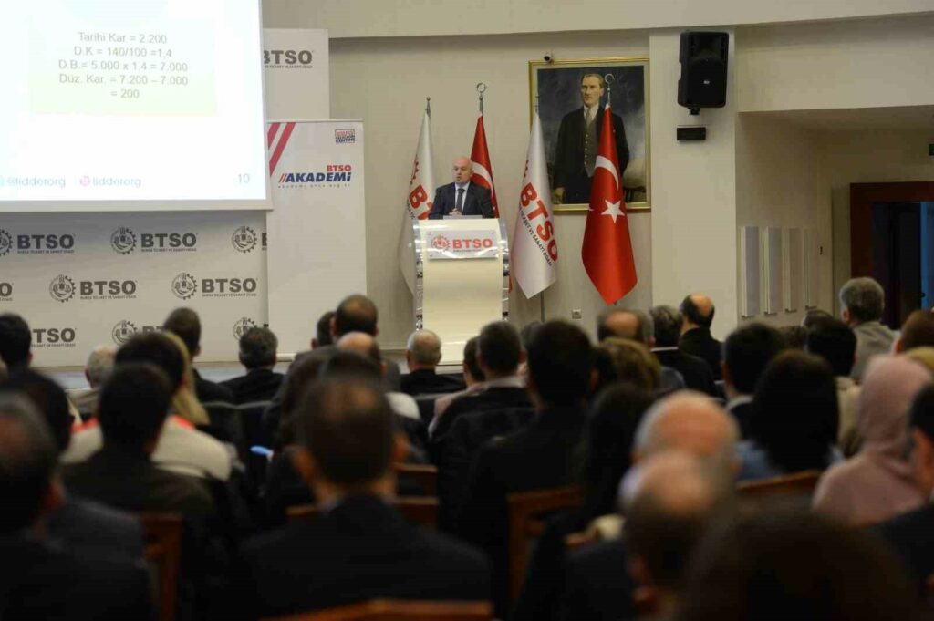 Enflasyon muhasebesi ile birlikte yatırımcının önünün açılacağını vurgulayan Prof. Dr. Karapınar, konuşmasına şöyle devam etti: “Finansal rakamlar daha güvenilir ve etkin olacak. Bununla birlikte dünya ile karşılaştırılabilir hale gelecek. Bu çerçevede enflasyon muhasebesine geçiş ve tebliğ taslağı sanayicilerimiz ve iş insanlarımız için çok önemli bir gelişme. BTSO Akademi çerçevesinde düzenlenen eğitimde bu gelişmenin uygulamacılara etkilerini tüm yönleriyle ele aldık. Enflasyon uzun bir süre vergileme rejimini çok yakından etkilemişti. Bundan sonra gerçek bilançolar ortaya çıkacak ve gerçek bir tablo üzerinden vergileme olacak. Bu, son zamanlarda ekonomi tarafında atılan en önemli adımlardan biri. Yabancı yatırımcı, Türkiye’deki şirket bilançolarını diğer ülkelerle kıyaslamakta zorluklar yaşıyordu. Düzenlemenin hayata geçmesiyle artık kar marjları ve bilançolarla ilgili raporlar, mukayese edilebilir duruma gelecek. Bu uygulama yeni yatırımların da yolunu açacak. Dolayısıyla Türkiye, bu adımla birlikte artık üst ligde yerini alacak.”