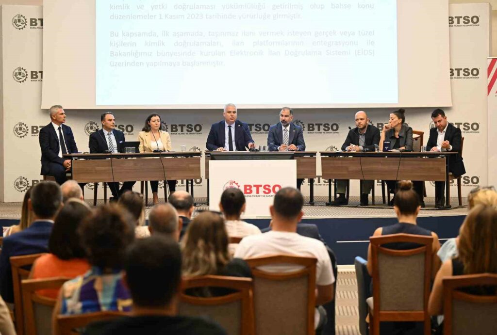 Bursa Ticaret ve Sanayi Odası (BTSO) Akademi projesi çerçevesinde “Elektronik İlan Doğrulama Sistemi (EİDS) Bilgilendirme Semineri” düzenlendi. Yeni uygulamanın emlak piyasasında köklü değişiklikler meydana getireceğini belirten sektör temsilcileri, düzenleme çerçevesinde ilan verme yetkisinin ise tek bir emlak işletmesi ile sınırlandırılması gerektiğini belirtti.