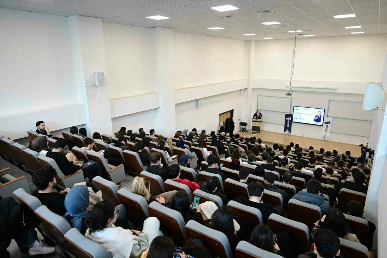 Mudanya Üniversitesi Konferans Salonu’nda düzenlenen etkinliğe Mudanya Üniversitesi Mütevelli Heyeti Başkanı Gıyasettin Bingöl, Mudanya Üniversitesi Rektörü Prof. Dr. Emin Karip, Mudanya Üniversitesi Danışma Kurulu Başkanı Prof. Dr. Ahmet Saim Kılavuz, akademisyenler, BTSO Yönetim Kurulu ve Meclis Üyeleri ile öğrenciler katıldı. Etkinliğin açılış konuşmasını yapan Mudanya Üniversitesi Rektörü Prof. Dr. Emin Karip, Bursa’nın sektörlerinde öne çıkan seçkin isimleri üniversitelerinde ağırlamaktan memnuniyet duyduklarını belirterek, İbrahim Burkay’a katılımı için teşekkür etti. Öğrencileri eğitim aldıkları bölümlere ilişkin sektörlere en iyi şekilde hazırlamak amacıyla teorik derslerin yanı sıra uygulamalı çalışmalara da büyük önem verdiklerini ifade eden Karip, “Bu kapsamda Bursa iş dünyası ile güçlü iş birlikleri yürütüyoruz. En kıymetli paydaşlarımızdan biri de Bursa Ticaret ve Sanayi Odası. İmzaladığımız protokollerle her zaman bizlere önemli katkılar sağlıyorlar. Etkinliğin düzenlenmesinde emeği geçen herkese teşekkür ediyorum” dedi.