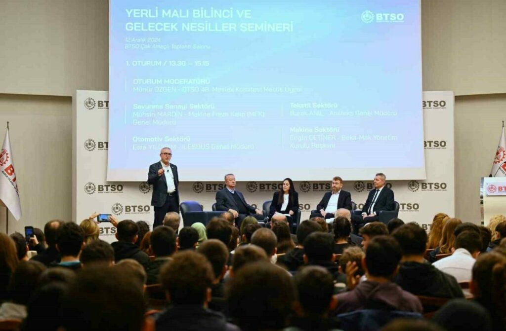 Bursa Ticaret ve Sanayi Odası (BTSO) Tutum, Yatırım ve Türk Malları Haftası kapsamında, Yerli Malı Bilinci ve Gelecek Nesiller Semineri’ne ev sahipliği yaptı. Bursa İl Milli Eğitim Müdürlüğü’nün katkılarıyla düzenlenen programda tarımdan sanayiye kadar her alanda büyük önem taşıyan yerli üretimin önemi vurgulanırken, Bursa’da üretilen ve yurt dışına satılan ürünler ile başarı hikâyeleri öğrencilere tanıtıldı.