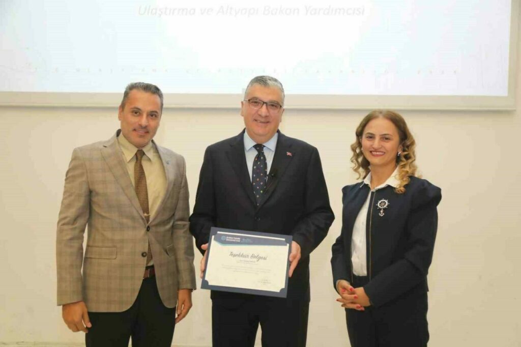 Türkiye’nin uluslararası organizasyonların genelinde yer aldığını ve başarılarını ispat etmeye devam ettiğini vurgulayan Durmuş Ünüvar, 50 farklı ülke ile imzalanmış 64 denizcilik anlaşmasının olduğunu anlattı. Türk limanlarının yükselişe devam ettiğini kaydeden Ünüvar, dünyanın en iyi 100 limanının 5’inin Türkiye’den olduğunu söyledi. Türkiye’nin 142 bin gemi insanı ile çalıştığını dile getiren Durmuş Ünüvar, çok daha iyilerini mezun olacak Denizcilik Fakültesi öğrencileri ile yapacaklarını kaydetti. Bakan Yardımcısı Ünüvar, mezun olacak öğrencilerin iş hayatında dikkat etmesi gereken hususları da aktararak konuşmasını sonlandırdı. Açılış dersinin ardından Denizcilik Fakültesi Dekanı Prof. Dr. Erinç Dobrucalı ve Denizcilik İşletmeleri Yönetimi Bölüm Başkanı Prof. Dr. Gökçe Çiçek Ceyhun, Ulaştırma ve Altyapı Bakan Yardımcısı Durmuş Ünüvar’a teşekkür belgesi takdim etti. Açılış dersi, toplu fotoğraf çekimi ile son buldu.