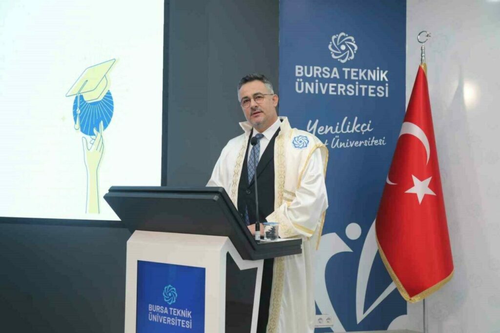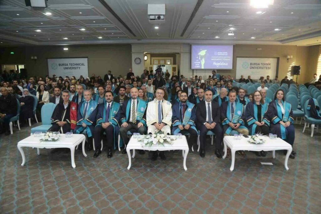 Bursa Teknik Üniversitesi (BTÜ) lisansüstünde mezuniyet heyecanı yaşandı. 449 doktora ve yüksek lisans mezunu için düzenlenen tören, Mimar Sinan Yerleşkesi Turkuaz Salon’da gerçekleşti. Törene; BTÜ Rektörü Prof. Dr. Naci Çağlar, Rektör Yardımcısı Prof. Dr. Beyhan Bayhan akademisyenler, mezunlar ve aileleri katıldı. Törenin açılışında konuşan Rektör Çağlar, tüm mezunları tebrik ederek, BTÜ’nün bilimsel üretkenliğine ve lisansüstü eğitimin stratejik önemine dikkat çekti. Güney Marmara’nın tek teknik üniversitesi olarak birçok alanda özgün çalışmalar yürüttüklerini belirten Rektör Çağlar, lisansüstü öğrencilerin BTÜ’nün akademik gücünün temel unsurlarından biri olduğunu vurguladı.