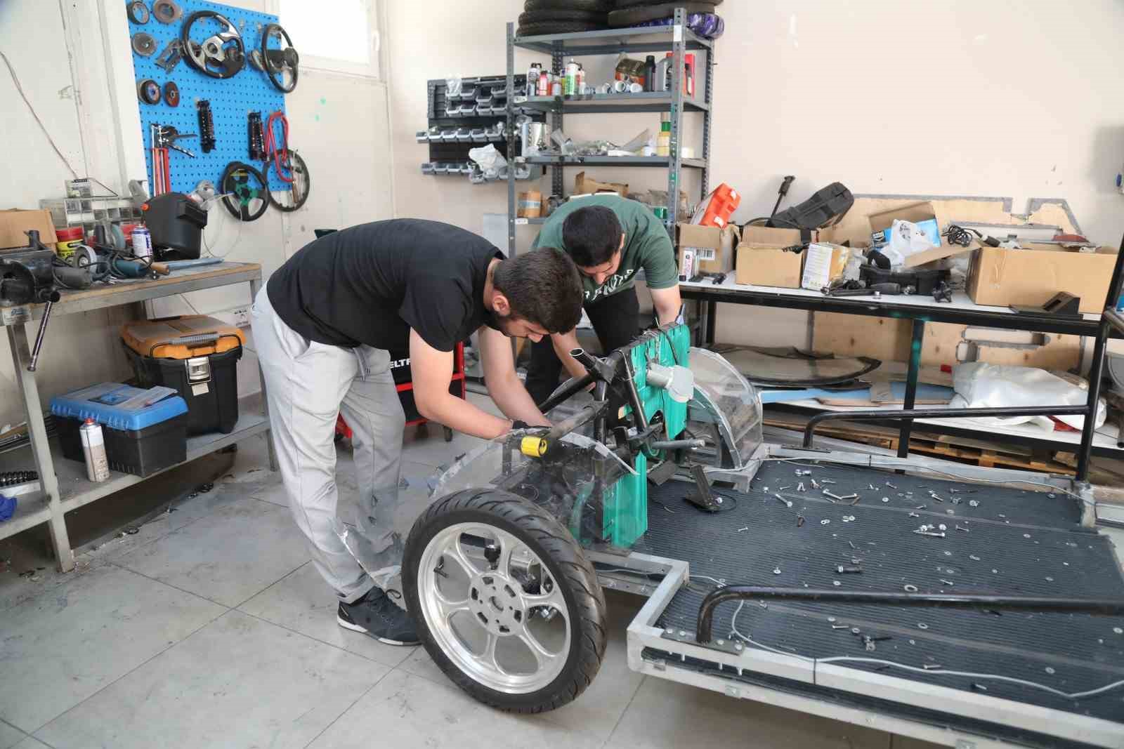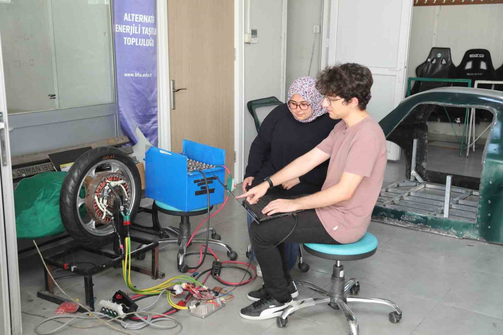 Bursa Teknik Üniversitesini (BTÜ), TEKNOFEST Efficiency Challenge Elektrikli Araç Yarışları’nda temsil edecek öğrenciler, gece gündüz demeden çalışmalarını sürdürüyor. Yoğun çalışma süreçlerinde öğrencileri yalnız bırakmayan BTÜ Rektörü Prof. Dr. Naci Çağlar, atölyeleri ziyaret ederek, öğrencilerden yarışa hazırladıkları araçlar hakkında bilgi aldı.