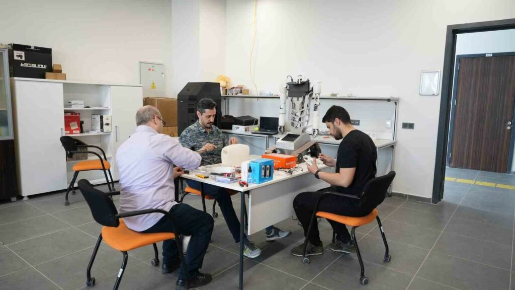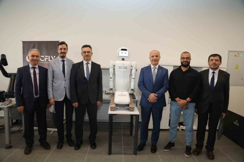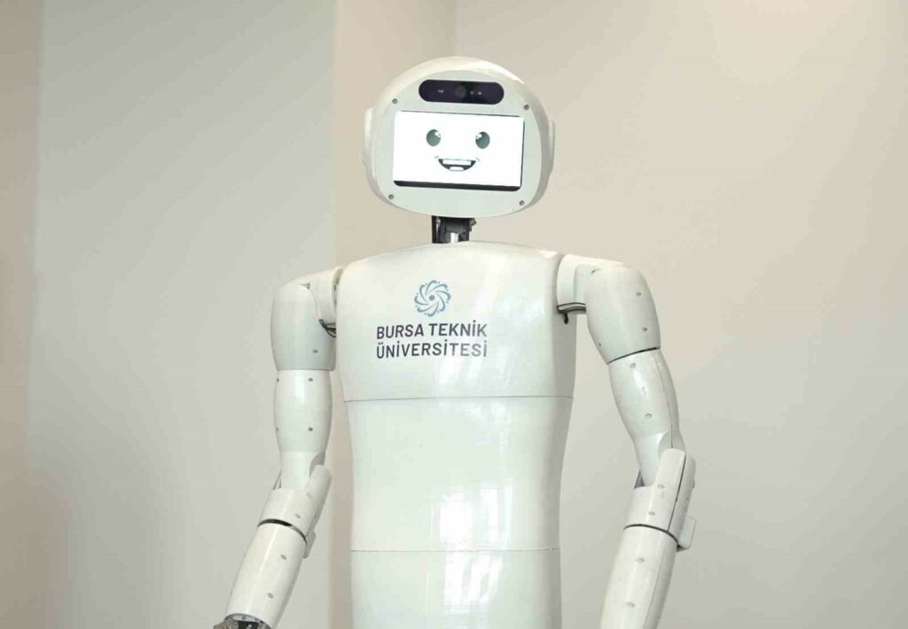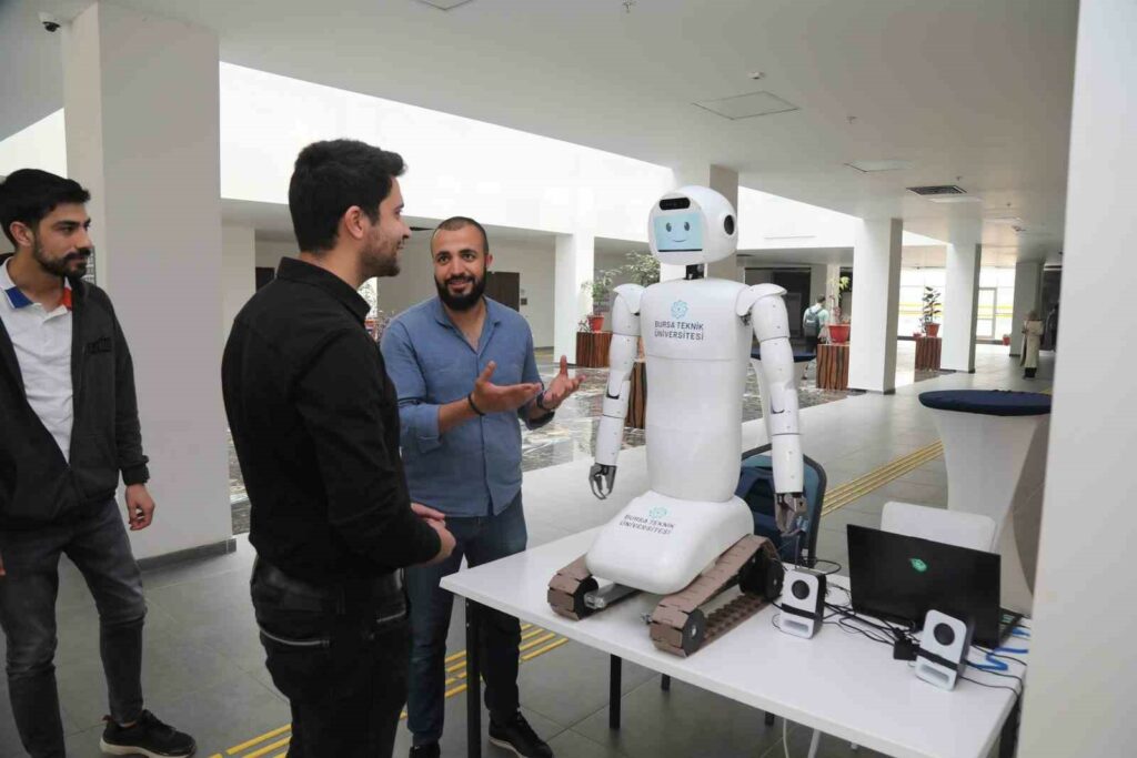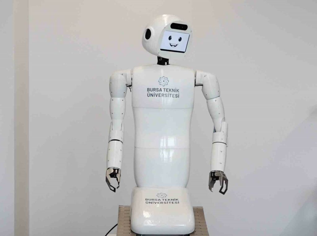 Bursa Teknik Üniversitesi Robot Teknolojileri ve Akıllı Sistemler Uygulama ve Araştırma Merkezi’nde yapay zekâ destekli insansı sosyal robot projesine imza atıldı. Mekatronik Mühendisliği Bölümü’nden proje yürütücüsü Dr. Öğretim Üyesi Nurettin Gökhan Adar ve yardımcı araştırmacı Dr. Öğretim Üyesi Mustafa Özden tarafından geliştirilen robotun, tasarım, imalat ve yazılım iş paketleri için Mekatronik, Elektrik-Elektronik ve Makine Mühendisliği bölümlerinden lisans ve yüksek lisans öğrencilerinden bir ekip oluşturuldu. Geçtiğimiz şubat ayında çalışmalarına başlanan robot, Türkiye’de akademik alanda bir ilk olma özelliği taşıyor. Yapay zekâ destekli sosyal mobil insansı robot, Yükseköğretim Kurulu (YÖK) Başkanı Prof. Dr. Erol Özvar’a da tanıtıldı. İnsanlarla etkileşime girme kabiliyetine sahip olan robotun tasarımı, imalatı ve yazılımının tamamı BTÜ bünyesinde gerçekleştiriliyor.