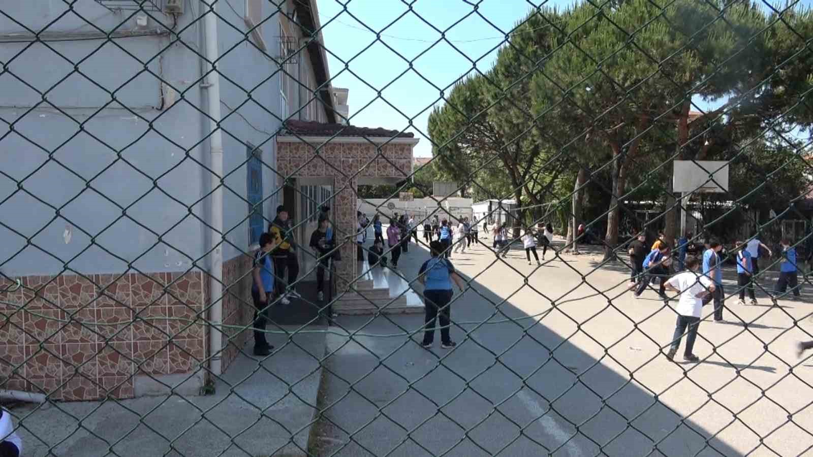 Bursa’nın Mudanya ilçesinde geçtiğimiz yıl meydana gelen 5.1 şiddetindeki depremden dolayı bir okulun kolonları ciddi hasar aldı. Tahliye kararı verilen okulun A bloğundaki öğrenciler B bloğa nakledilirken, aradan geçen zamanda yıkılma tehlikesi olan bina önünde çocuklar teneffüslerini yapmaya devam ediyor.