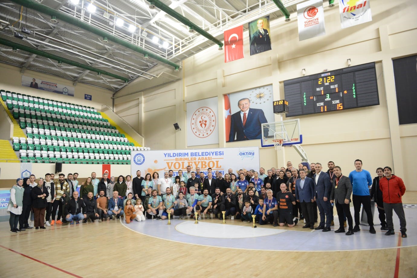 Yıldırım Belediyesi’nin çalışanlarına yönelik düzenlediği birimler arası voleybol turnuvası, bu yıl da heyecan dolu anlara sahne oldu. Geleneksel hale gelen turnuvaya bu yıl, 11 müdürlükten toplam 132 personel katıldı. Naim Süleymanoğlu Spor Kompleksi’nde gerçekleştirilen karşılaşmalarda ön plana çıkan dostluk oldu. Yıldırım Belediye Başkanı Oktay Yılmaz, gerçekleştirilen 33 müsabakada dostça mücadele eden personeli ziyaret etti. Finale yakışır bir mücadelenin olduğu maçta Gençlik ve Spor Hizmetleri Müdürlüğü’nü yenen Park Bahçeler Müdürlüğü 1’inci olurken, Ulaşım Hizmetleri Müdürlüğü 3’üncü, Temizlik İşleri Müdürlüğü 4’üncülüğü elde etti. Dereceye giren takımlara kupa ve madalyaları Yıldırım Belediye Başkanı Oktay Yılmaz tarafından takdim edildi. Program hatıra fotoğrafı çekilmesi ile sona erdi.