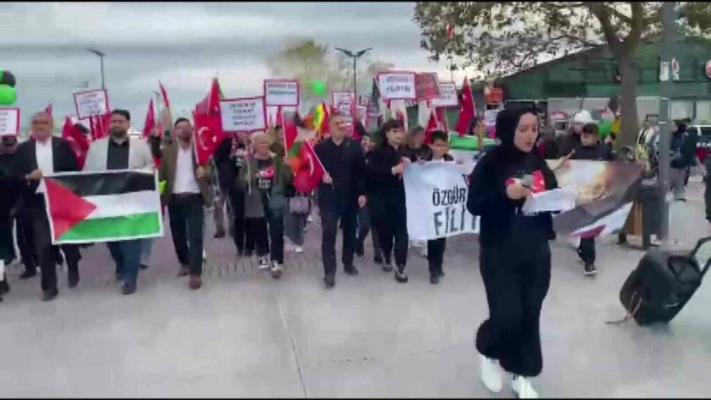 Burgaz Gençlik ve Yardımlaşma Derneği, Filistin’e destek amacıyla yürüyüş gerçekleştirdi. Mudanya BUDO İskelesi önünde toplanan katılımcılar, “Filistin özgürlüğü için gökyüzüne ses veriyoruz” sloganı altında Mütareke Meydanı’na kadar yürüdü. Ellerinde Türk ve Filistin bayrakları taşıyan grup, İsrail’in saldırılarını protesto ederek Filistin halkına destek mesajı verdi.