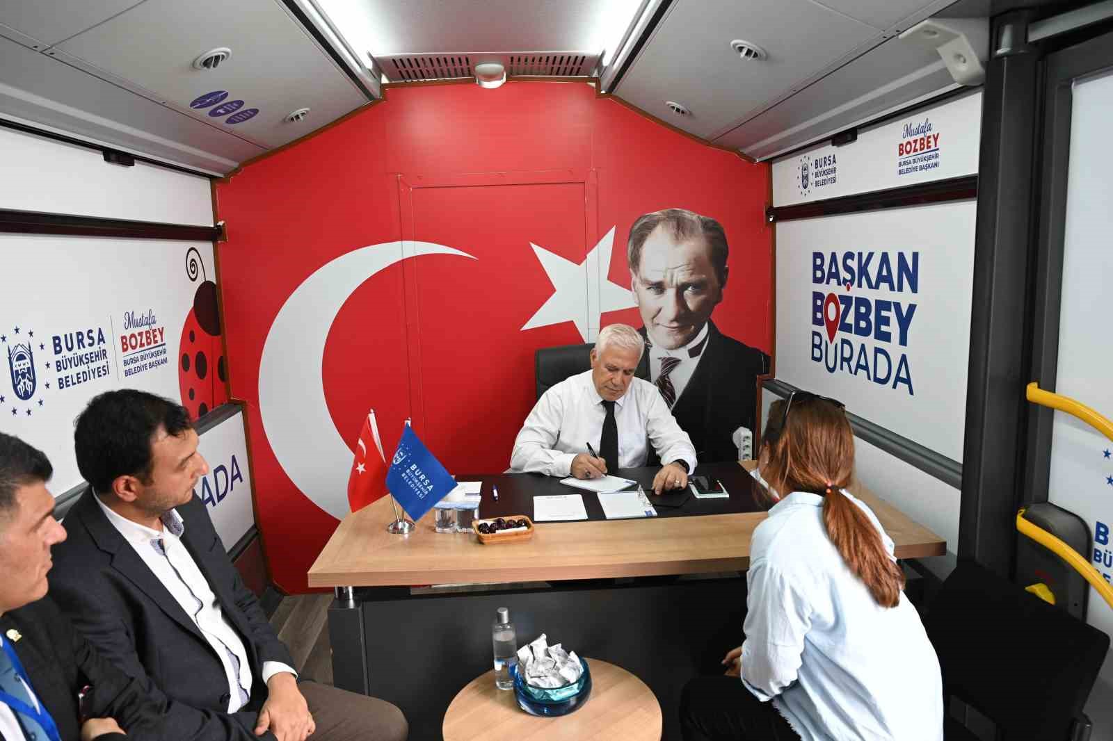Ardından Keles Belediye Başkanı Ali Doğru’yla makamında görüşen Başkan Bozbey, ilçedeki mahalle muhtarlarını, Kocayayla Kadınları Tarımsal Kalkınma Kooperatifi’ni ve Keles Ziraat Odası Başkanlığı’nı da ziyaret etti. İlçe merkezinde yoğun ilgiyle karşılanan Başkan Bozbey, esnaf ziyaretlerinin ardından makamı haline getirilen otobüste Keleslileri ağırladı. Görüşmelerde Başkan Bozbey’e vatandaşların ihtiyaçlarına göre Büyükşehir Belediyesi bürokratları eşlik etti.