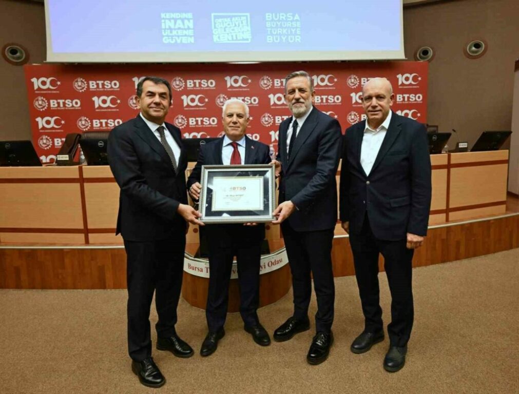 Bursa’nın cesarete ve kararlılığa ihtiyacı olduğunu vurgulayan Başkan Burkay, “BTSO olarak Büyükşehir Belediyemizin tüm çalışmalarına katkı vermeye hazırız. Kent ekonomisini temsil eden, şehrini ve vatanını seven bir girişimci topluluğuyuz. Bursalılık bilinciyle çalışan, sanayiden turizme, ticaretten sağlığa kadar farklı sektörlerde 70 meslek komitemiz bulunuyor. Bizler kalkınma ile birlikte gelişmeyi de sağlamamız gerektiğine inanıyoruz. Ekonomi ile birlikte çevre, eğitim, sosyal ve kültürel her alanda sorumluluk almaya hazır bir girişimci profilimiz var. 155 meclis üyemiz ve 57 bin üyemizle her türlü katkı vermeye hazırız. BTSO’nun sadece kentimiz için değil Türkiye için de dönüştürücü gücü olan önemli bir merkez olduğunu biliyoruz. Bu yüzden mottomuz ‘Bursa Büyürse Türkiye Büyür.’ Bu anlayışla çalışıyoruz. Bursa Büyükşehir Belediyemizin, kentimizin yeni anayasası olacak 1/100 binlik yeni çevre düzeni planına da destek olacağız. Bu planın hem girişimcilerimiz hem de bu şehirde yaşayan herkesin önünü daha rahat görmelerini ve kaynaklarını verimli kullanmalarını sağlamasını temenni ediyoruz.” ifadelerini kullandı.