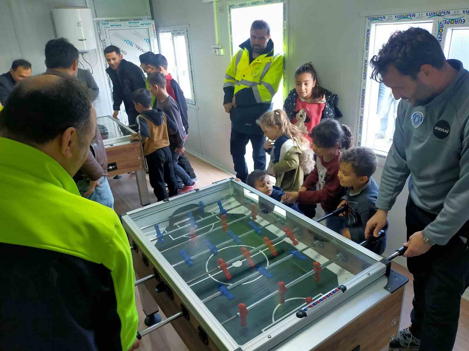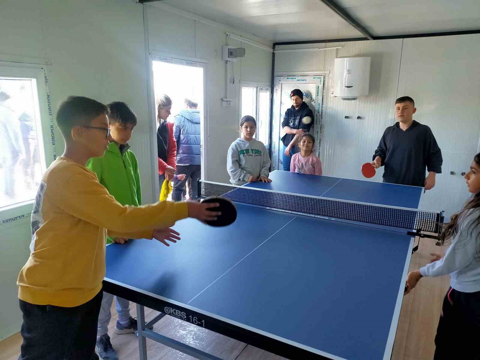 Büyükşehir Belediyesi’nin 1. Bölgede kurduğu konteyner kente yapılan kütüphaneye 1200 kitap ve kütüphane malzemesi teslim edilirken, 3. Bölgedeki konteyner kente de özellikle çocuk ve gençlerin moral bulması için 2 adet masa tenisi ve 2 adet langırt masası kuruldu.