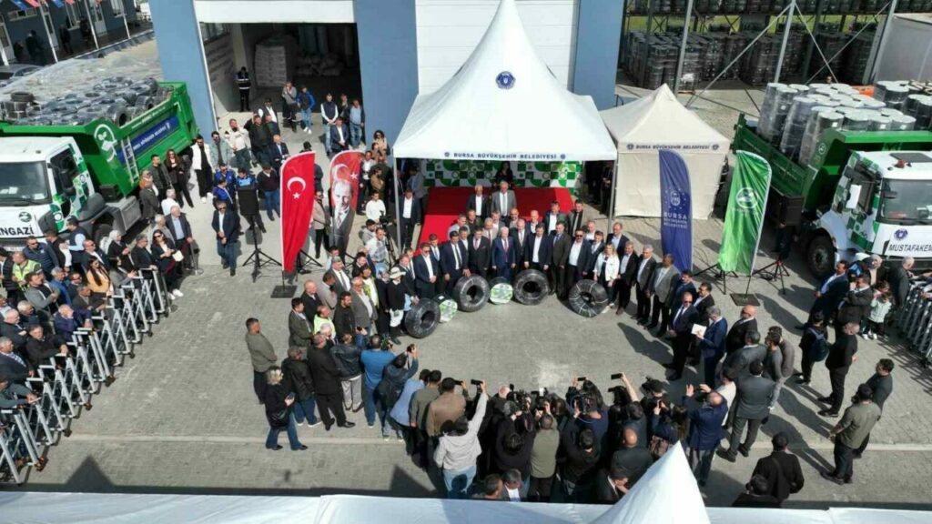 Bursa Büyükşehir Belediyesi’nin Tarım Peyzaj AŞ yatırımıyla kente kazandırdığı Damla Sulama Boru Üretim Tesisi’nde (Tarım Plast Fabrikası) yüzde 100 geri dönüşüm hammaddesiyle üretilen yaklaşık 10 bin sulama borusu, düzenlenen törenle çiftçilere teslim edildi. Çiftçiye olan desteklerini artırarak sürdüreceklerini belirten Başkan Mustafa Bozbey, yakın zamanda sıvı gübreyi de üreticilerle buluşturacaklarını açıklayarak mazot desteği için de hazırlık yaptıklarını söyledi.