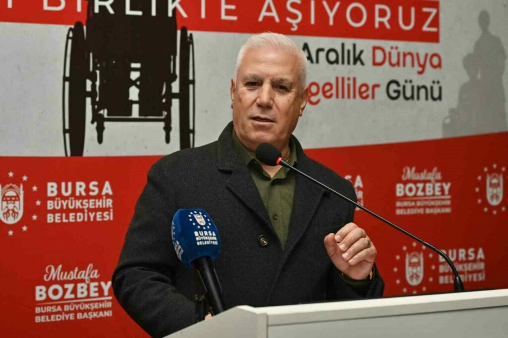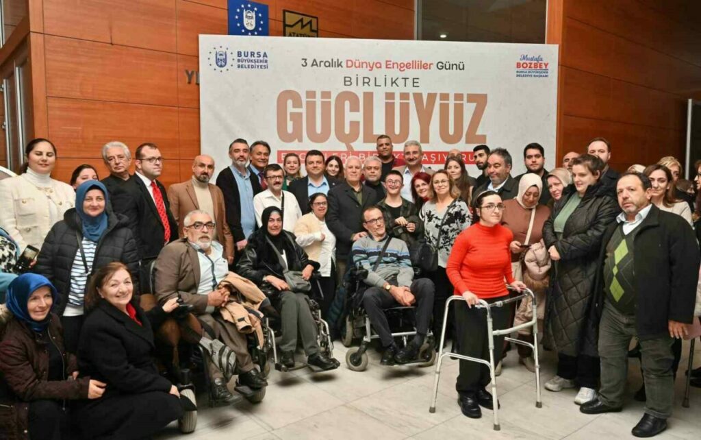 Bursa Büyükşehir Belediye Başkanı Mustafa Bozbey, birbirimize güç vermek, dayanışma ve sevginin her türlü engeli aşabileceğini vurgulamak amacıyla bir araya geldiklerini söyledi. Engellerin ötesinde bir kenti birlikte planladıklarını ve birlikte yol aldıklarını belirten Başkan Bozbey, Dünya Engelliler Farkındalık Günü dolayısıyla Aralık ayı boyunca çeşitli etkinlikler ve çalışmalar düzenleyeceklerini açıkladı. Sadece bir gün değil her zaman engelli bireylerin yanında olduklarını ifade eden Başkan Bozbey, “En büyük engel, zihinlerdeki ön yargılardır. Hepimiz aynı havayı soluyor, aynı çevreyi paylaşıyoruz. Dolayısıyla eşitiz ve eşit şartlara sahip olmalıyız. Bursa Büyükşehir Belediyesi olarak yurttaşlarımızın hayatını kolaylaştıracak çözümler üretmek ve iş yerinde dezavantajlı çalışma arkadaşlarımızın haklarını gözeterek daha kapsayıcı bir çalışma ortamı kurmak bizim öncelikli görevlerimizden biridir. Bursa’mızda adil, katılımcı ve herkesin kendini değerli hissettiği yönetim anlayışımız doğrultusunda birlikte çalışıyoruz” dedi.
