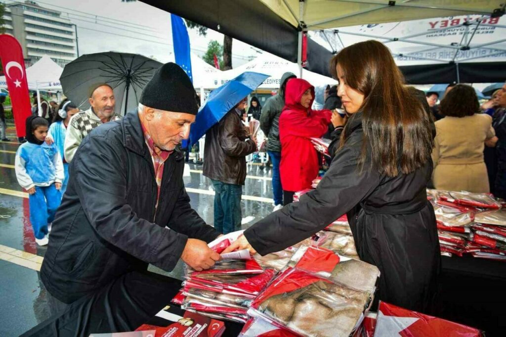 Yağmura rağmen poster dağıtım etkinliğine yoğun ilgi gösteren vatandaşlarla sohbet eden Başkan Mustafa Bozbey, Cumhuriyet’in en büyük ortak değer olduğunu vurgulayarak, “17 ilçemizde 60 bin civarında Ata posteri dağıtıyoruz. Vatandaşlarımız iş yerlerini ve evlerini bu bayraklarla donacaktır. Cumhuriyet coşkusunun her yerde hissedilmesini sağlamalıyız. Cumhuriyet, bizlere Ulu Önder Mustafa Kemal Atatürk’ün en büyük armağanıdır. Bu armağana sahip çıkmak, onun ilke ve devrimlerini yaşatmak hepimizin en temel sorumluluğudur. Cumhuriyet Bayramı’nı coşkuyla kutlamak, aynı zamanda birlik, beraberlik ve umut duygularımızı tazelemektir. Bursa, her zaman olduğu gibi bu yıl da cumhuriyetine sahip çıkıyor. Şimdiden Cumhuriyet Bayramımızı kutluyorum” dedi.