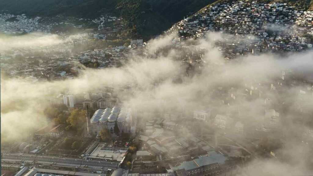 Bursa güne sisle uyandı. Dün yaşanan şiddetli yağış yerini sisli bir havaya bıraktı.