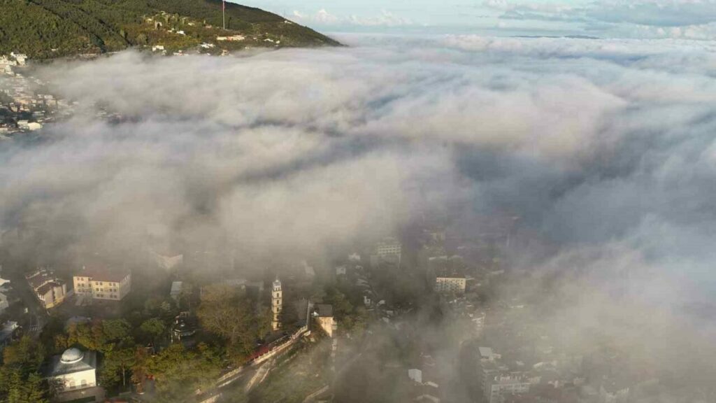 Bursa güne sisle uyandı. Dün yaşanan şiddetli yağış yerini sisli bir havaya bıraktı.
