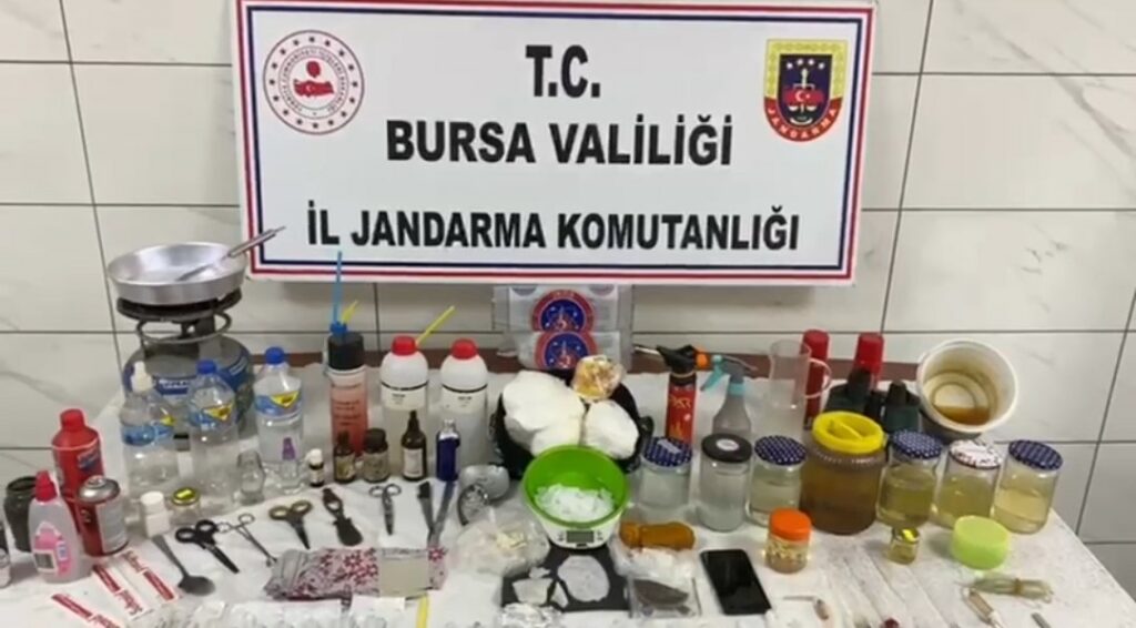 Bursa İl Jandarma Komutanlığına bağlı birim ve birlikler tarafından vatandaşların huzur ve güvenliğini sağlamak maksadıyla 28 Ekim-4 Kasım tarihleri arasında çok sayıda operasyon yapıldı. Suçluları yakalamak ve suçu azaltmak için yapılan operasyonda kentin birçok noktasında yakın takipler başladı. Ekipler çeşitli suçlardan aranan 10 şüpheliyi yakalarken, D.T. ve Ö.D. isimli şüphelilerin ev ve iş yerlerinde yapılan aramada; 15 kilo uyuşturucu, 5 adet silah, 1 av tüfeği, 321 adet 9 mm çapında fişek, 3 adet hassas terazi, 66 bin basılmış sigara, 5 litre sıvı metamfetamin, 5 bin bandrolsüz sigara, 22 adet uyuşturucu madde kullanma aparatı, 36 adet metamfetamin imalinde kullanılan muhtelif malzeme aparat, 83 adet elektronik sigara likiti, 900 gram pipo tütünü, 12 bin 600 adet bandrolsüz makaron ele geçirildi. İşlemlerinin ardından adliyeye sevk edilen 10 şüpheliden K.E., Ö.Y., U.D., İ.B., D.T. ve Ö.D. isimli 6 şahıs tutuklanırken, B.Ç., N.C., R.C., M.C. isimli şahıslar da adli kontrol kararıyla serbest bırakıldı.