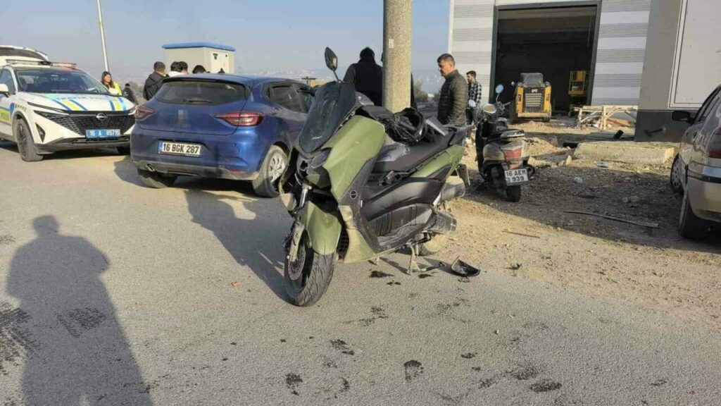 Kaza, saat 09.00 sıralarında Cumhuriyet Mahallesi Mareşal Fevzi Çakmak Caddesi’nde meydana geldi. Cadde üzerinde seyir halinde olan Göktuğ Ö. (22) idaresindeki 16 BTS 859 plakalı motosiklet, park halindeyken dönüş yapmak için manevra yapan Emre S. (21) yönetimindeki 16 BGK 287 plakalı otomobille çarpıştı.