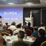 Bursa’nın 2013 yılından bu yana ekonomik göstergelerde önemli bir gelişim gösterdiğini kaydeden Başkan Burkay, konuşmasına şöyle devam etti: “Bu dönemde Ar-Ge ve tasarım merkezi sayımız 19’dan 170’e, kilogram başı ihracat değerimiz 4,5 dolara kadar yükseldi. İhracatımız yıllık 17 milyar dolar seviyelerine, orta yüksek teknoloji ihracatındaki payımız ise ülke ortalamasının iki katına çıktı. Ürettiğimiz mal ve hizmeti 200’ü aşkın ülke ve bölgeye sunuyoruz. Sanayideki dönüşümünü büyük ölçüde tamamlayan, tarihi projelerle milli teknoloji hamlesinin en önemli aktörleri arasında bulunan Bursamız son yıllarda hizmete açılan dev ulaşım projeleri sayesinde küresel ticaret ağında artık çok daha güçlü bir çekim merkezi potansiyeline de sahip.”