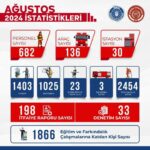 Geride bıraktığımız Ağustos ayında Bursa Büyükşehir Belediyesi İtfaiye Daire Başkanlığı ekipleri, hava sıcaklarının etkisiyle ortaya çıkan yangınların haricinde, bin 403 yangın, bin 25 arama kurtarma, 3 dış görev ve 23 diğer itfaiye hizmetleri olmak üzere 2 bin 454 olaya müdahale etti. Yapılan açıklamada ayrıca bin 866 kişiye eğitim, olaylarla alakalı 198 itfaiye raporunun hazırlandığı ve 33 denetim gerçekleştirildiği ifade edildi.
